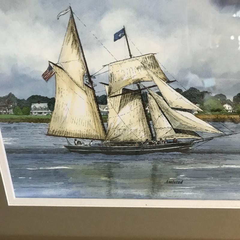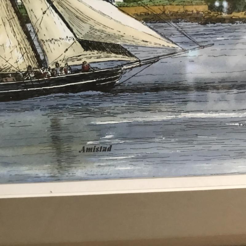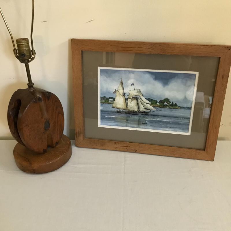 Lot includes antique pully lamp (quickly turned on, but seems to have a short and did not turn on again) approx. 23” tall) and Amistad ship print (approx. 19” x 15”). Shipping available or local pickup in Hendersonville, NC.