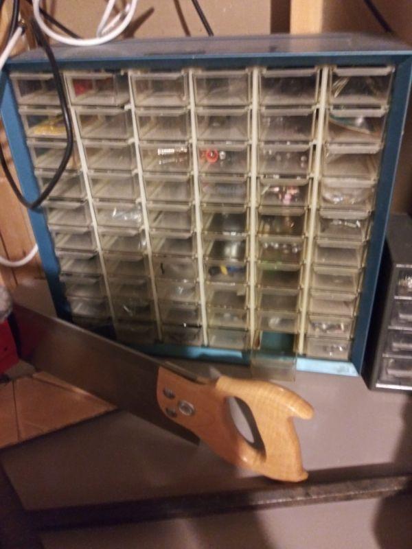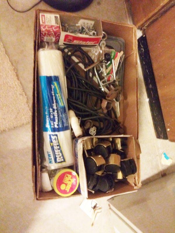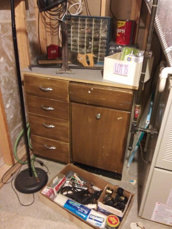 VARIETY OF HARDWARE AND ORGANIZER, SHOEMAKERS MOLD, LIGHT BULBS AND MORE