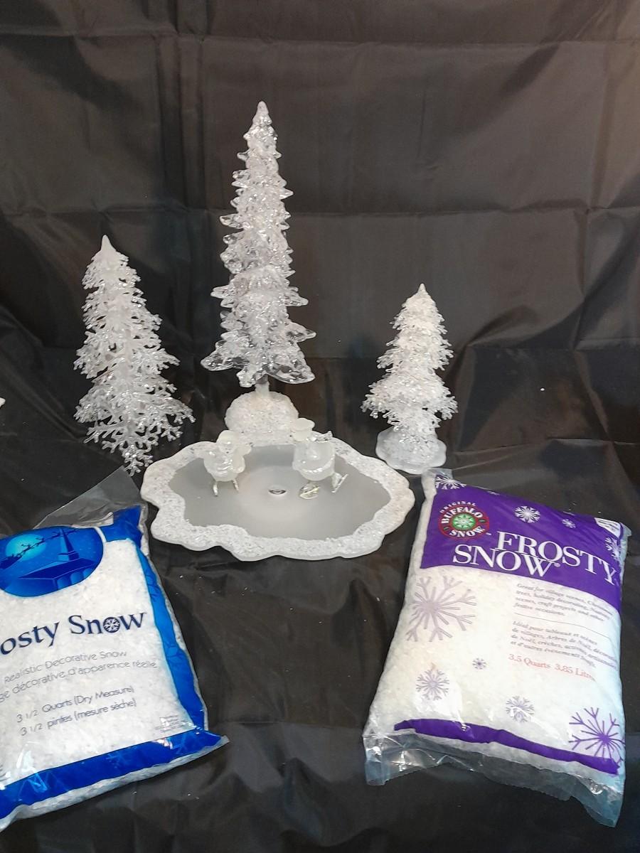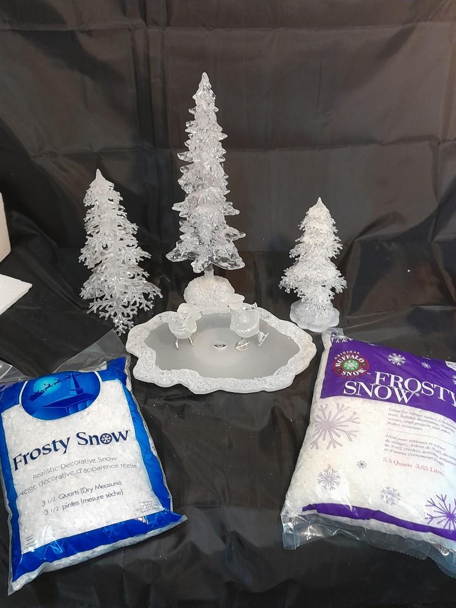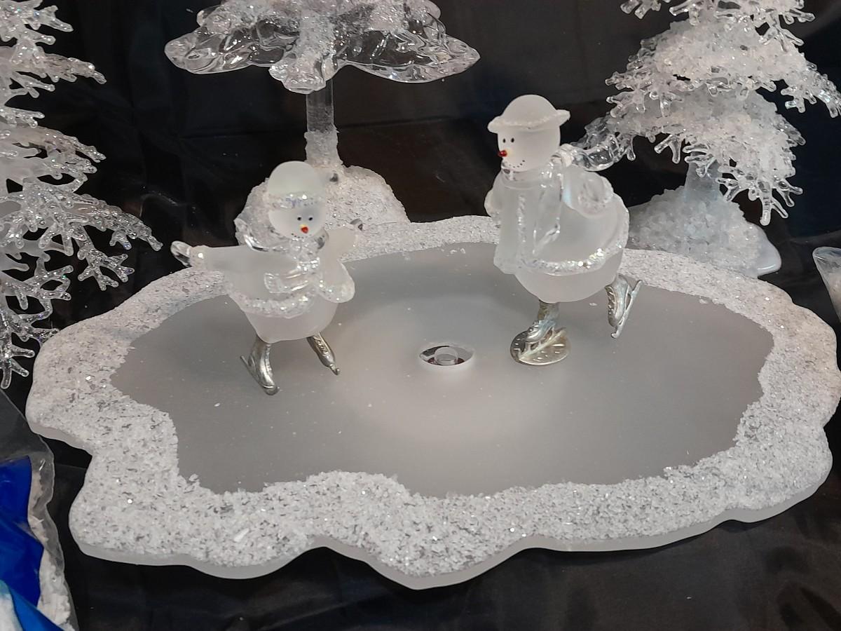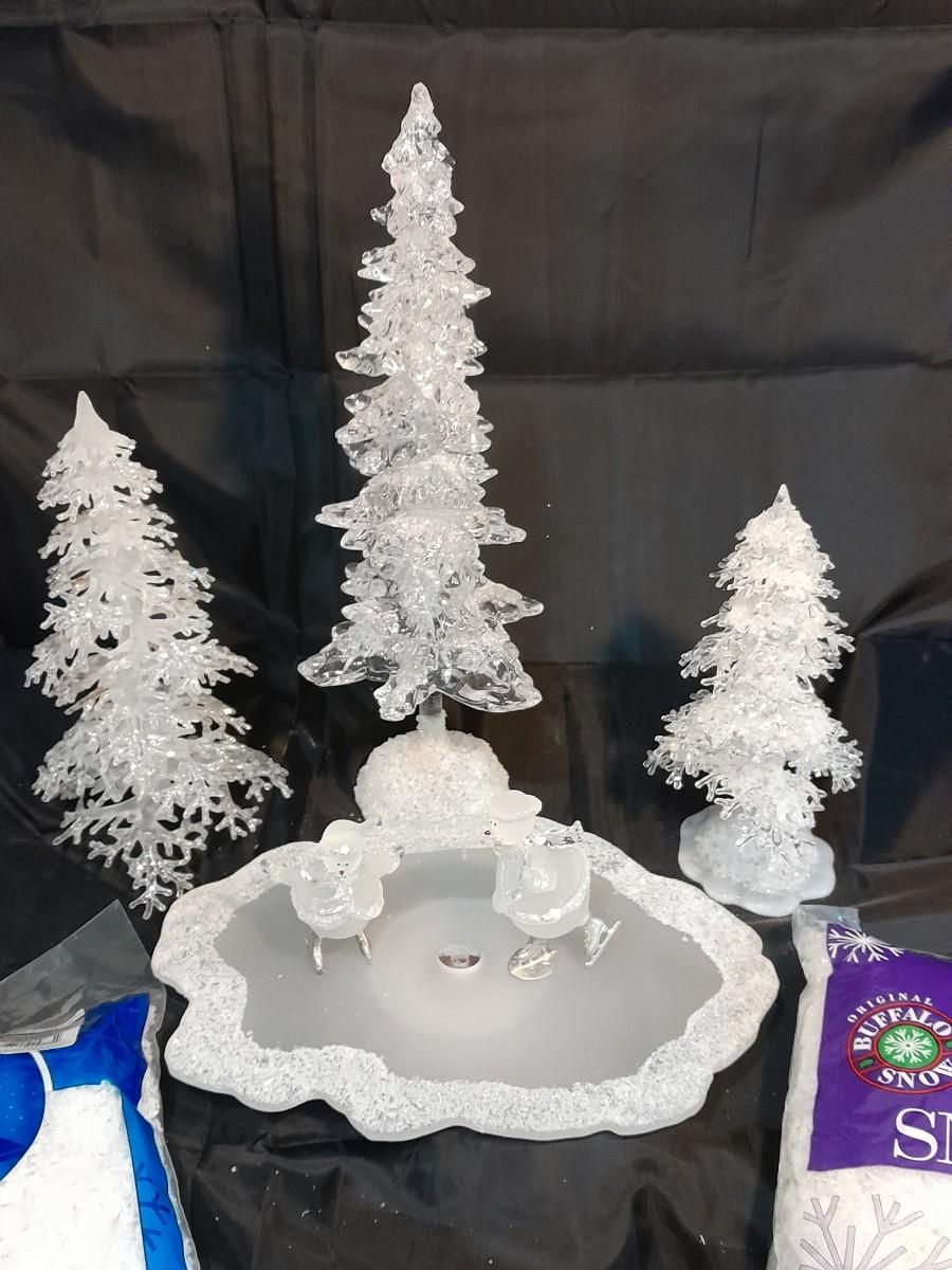 LOT 75 SKATING SNOWMEN WITH TREES AND FROSTY SNOW