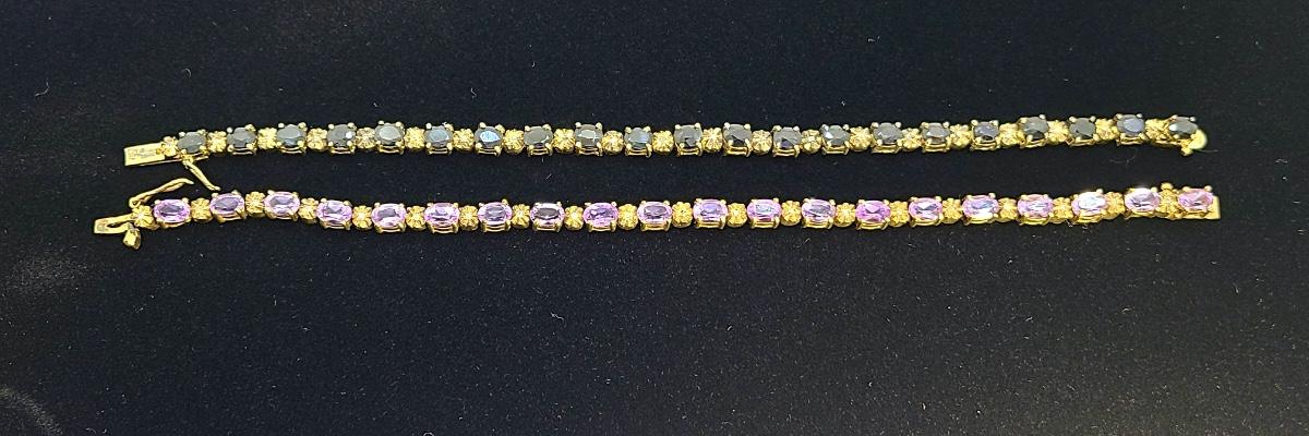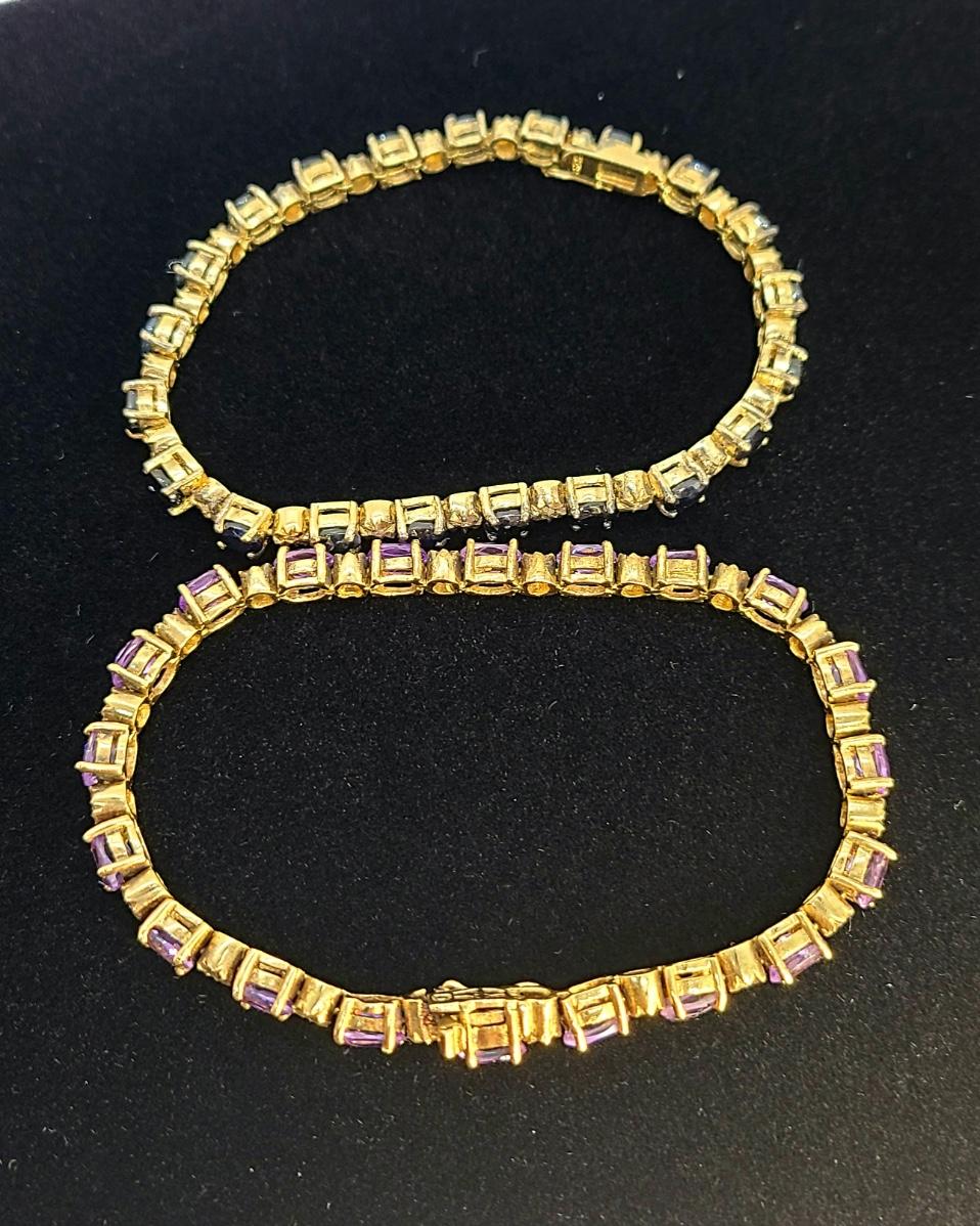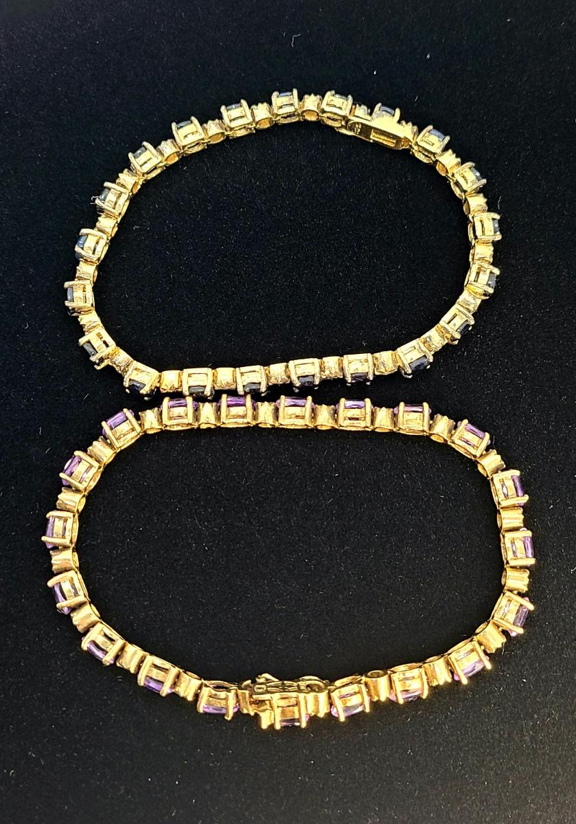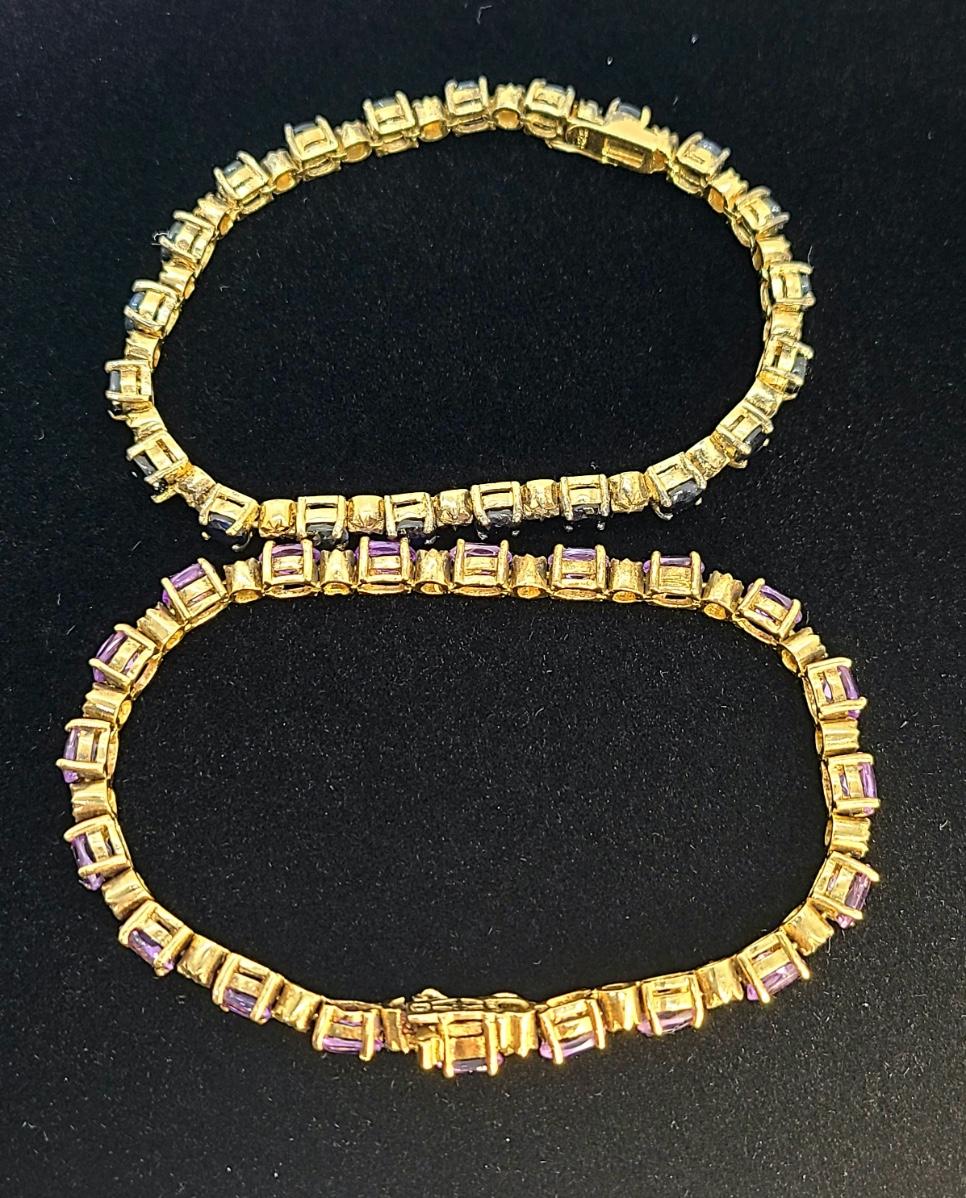 Lot 75: Spinel & Amethyst Gold 925 Gold Vermeil Tennis Bracelets