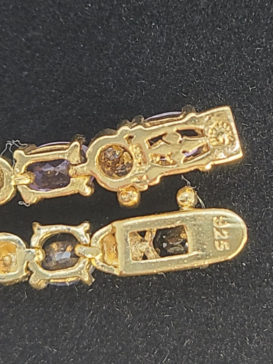 Two lovely tennis bracelets, one is a 925 Spinel, gold vermeil tennis bracelet, and the other is a 925 gold vermeil amethyst tennis bracelet. The pictures show condition, measurements if taken, and what is included in the lot. Due to the large amount that we photograph and the time frame, we are not always able to take measurements. All items unless noted, are pre-owned and may have been used, and are untested. Thank you
