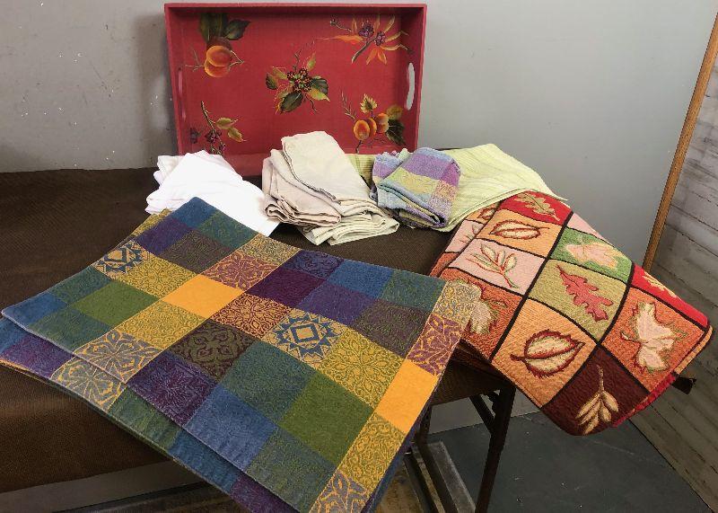Lot #75 Table linens and red tray