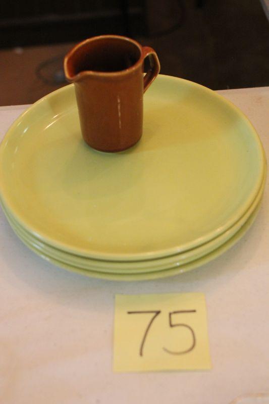Lot 75 Vintage CA Pottery Brusche Dinner Plates Lime Green