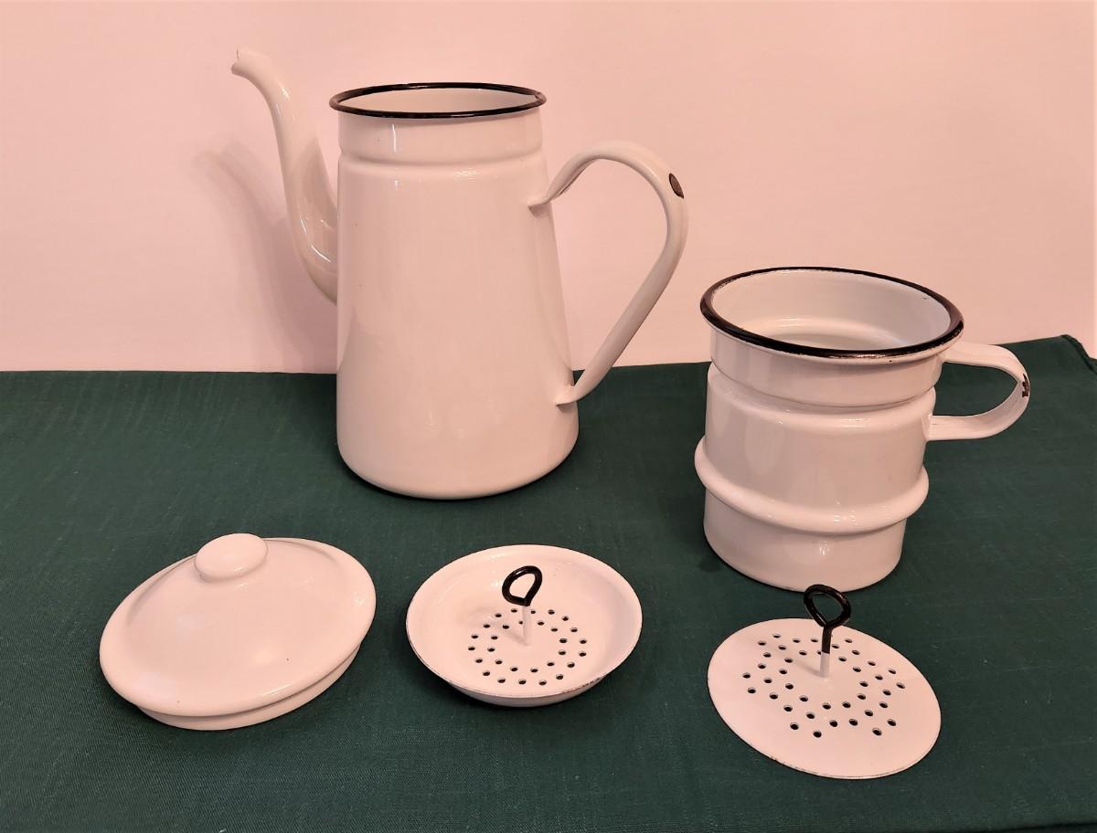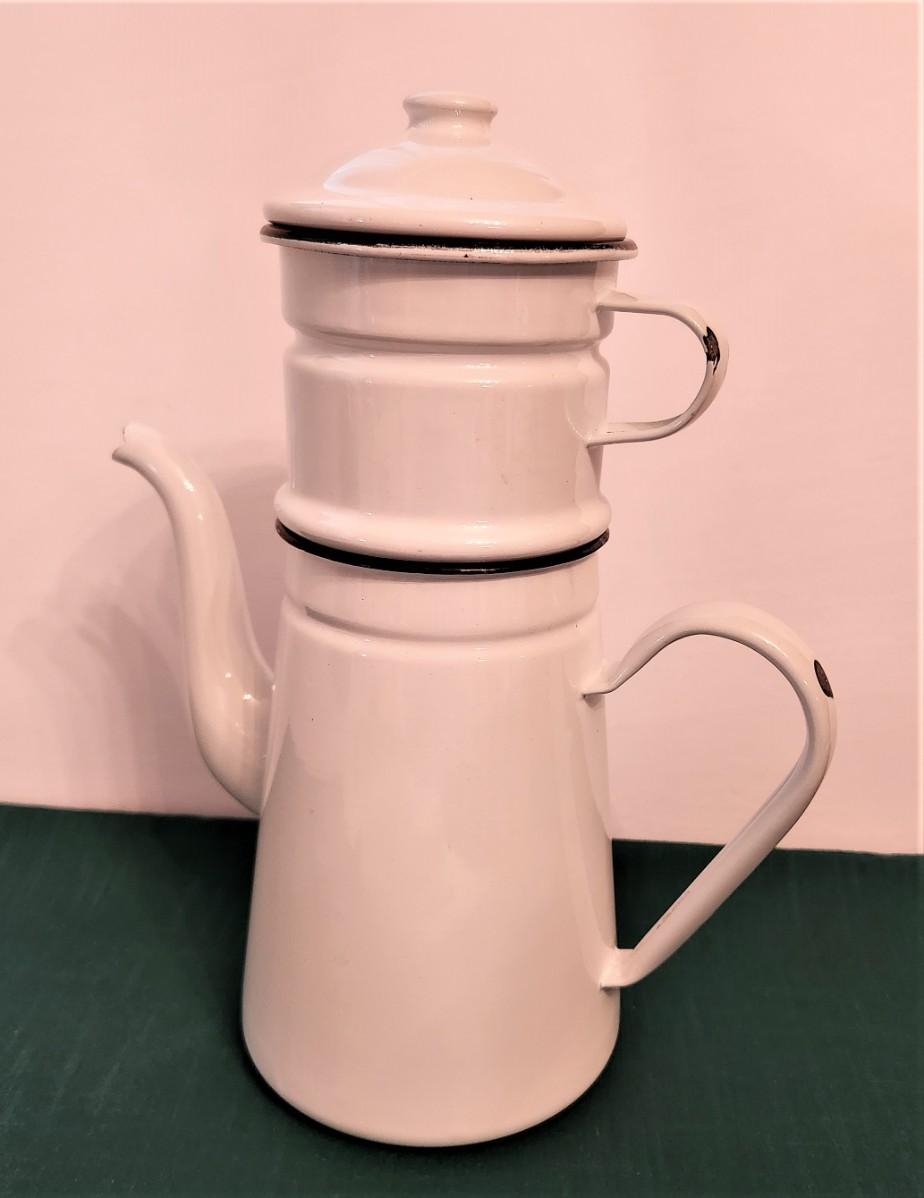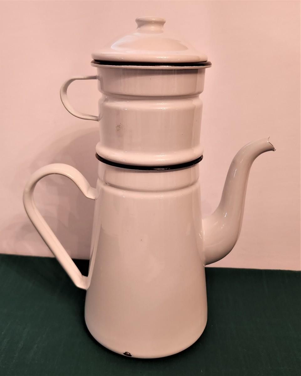 Lot #75 Vintage French Enamel Coffee Pot - Complete
