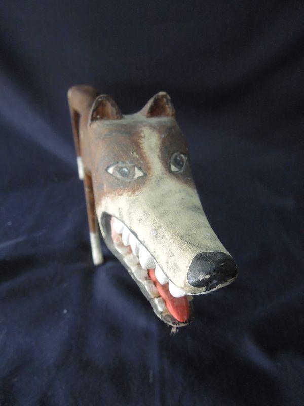 Lot 75: Whimsical Painted Carved Panting Dog Signed Roy Minshew