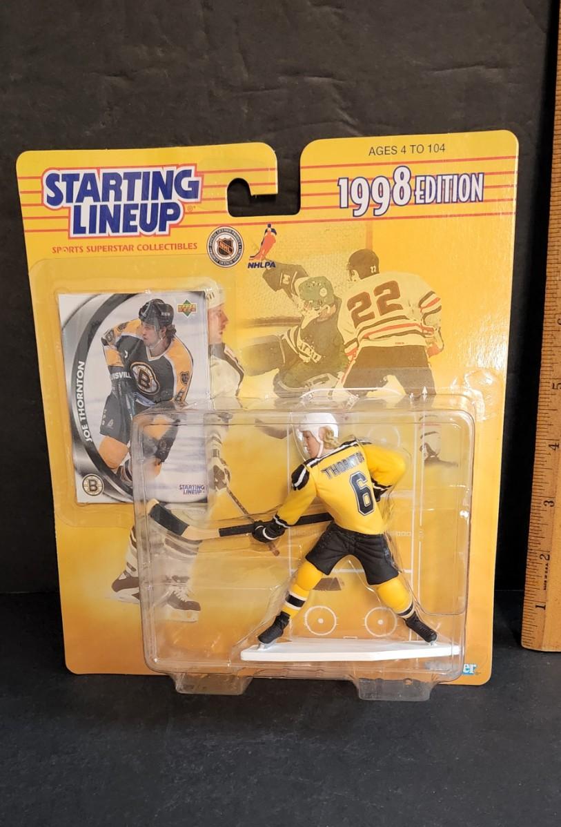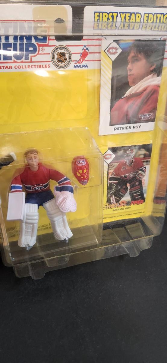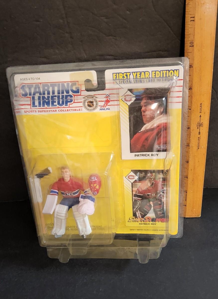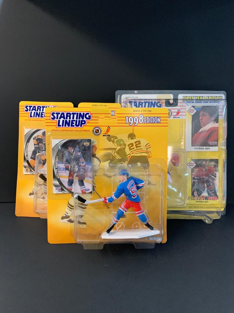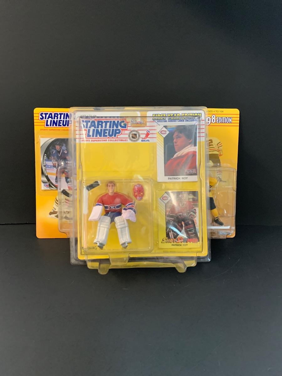 LOT 11J: Vintage Starting Line-up NHL Figures: Patrick Roy, Ed. Joe Thornton, Wayne Gretzky