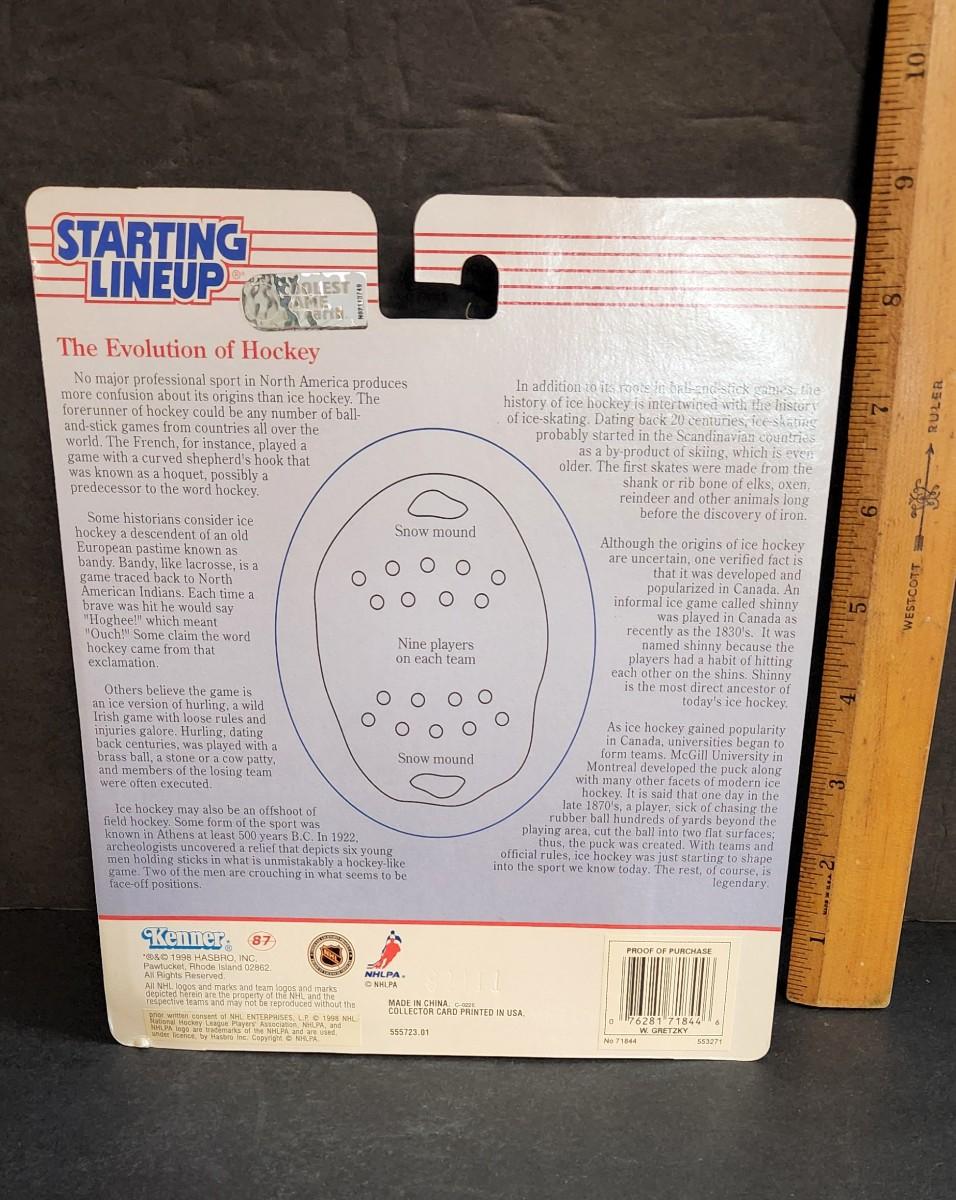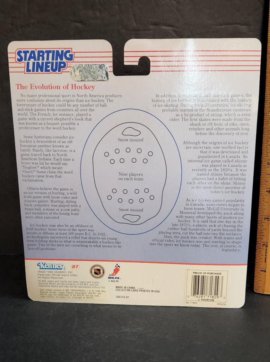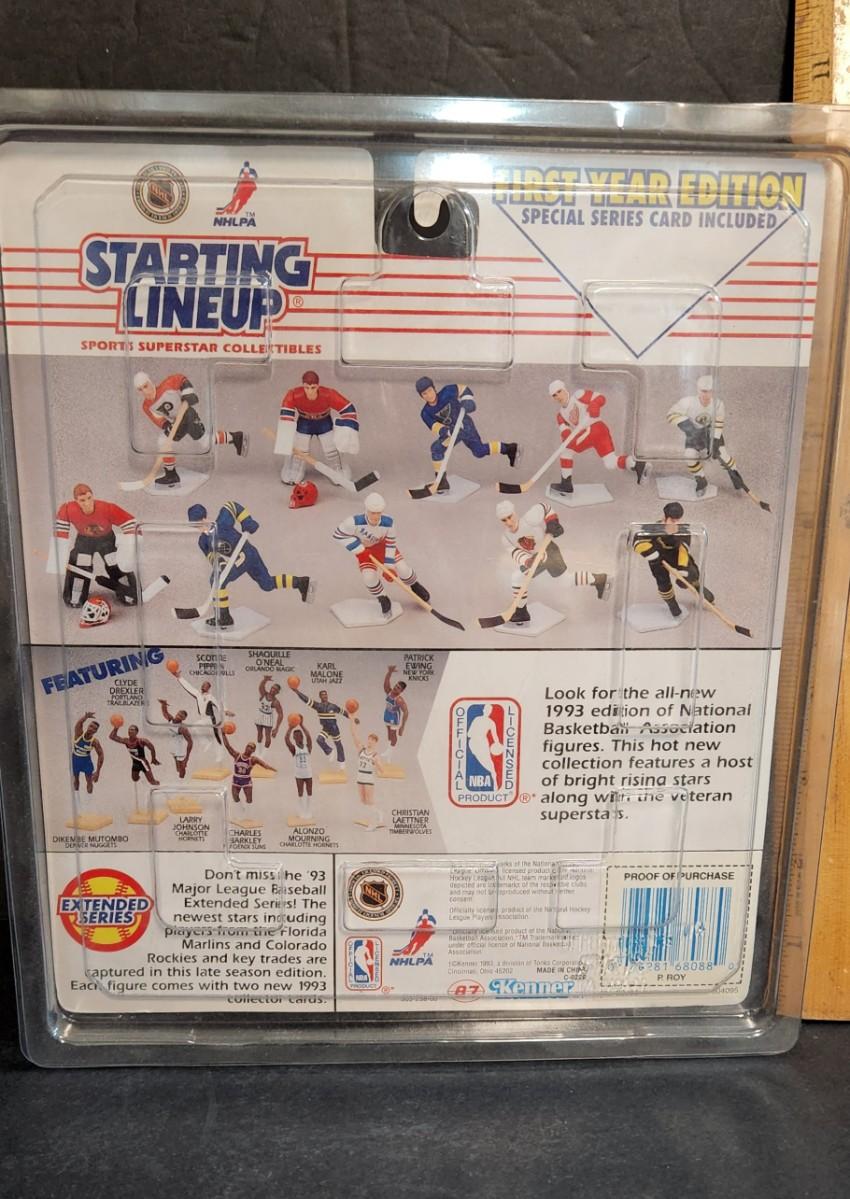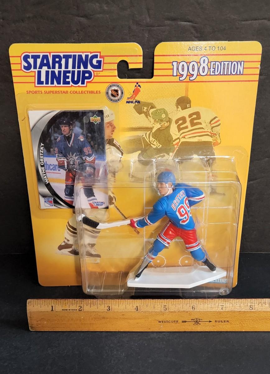 LOT 11J: Vintage Starting Line-up NHL Figures: Patrick Roy, Ed. Joe Thornton, Wayne Gretzky