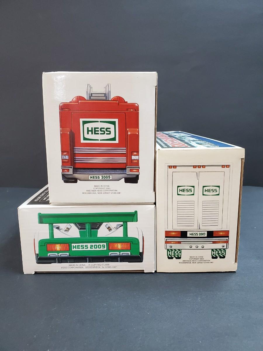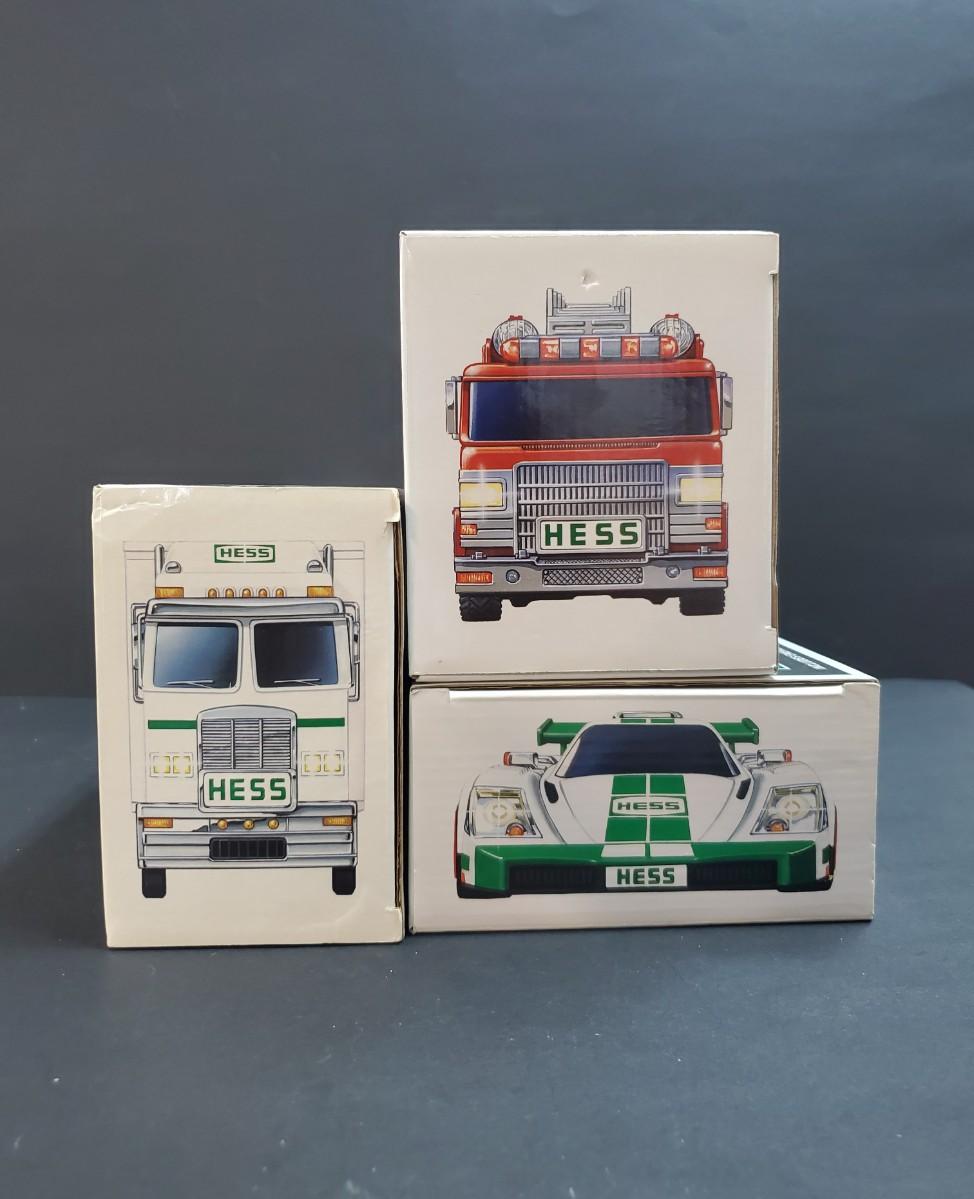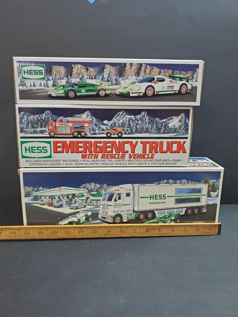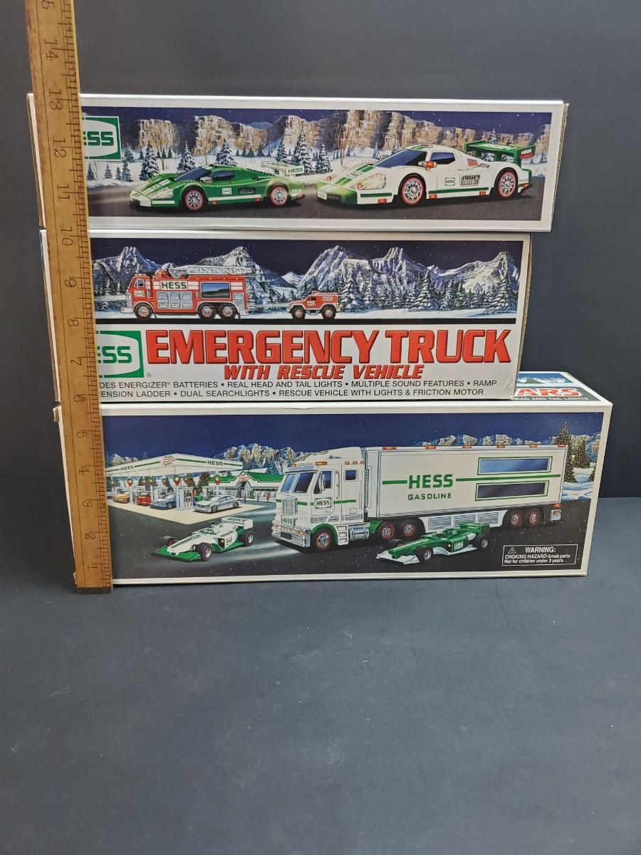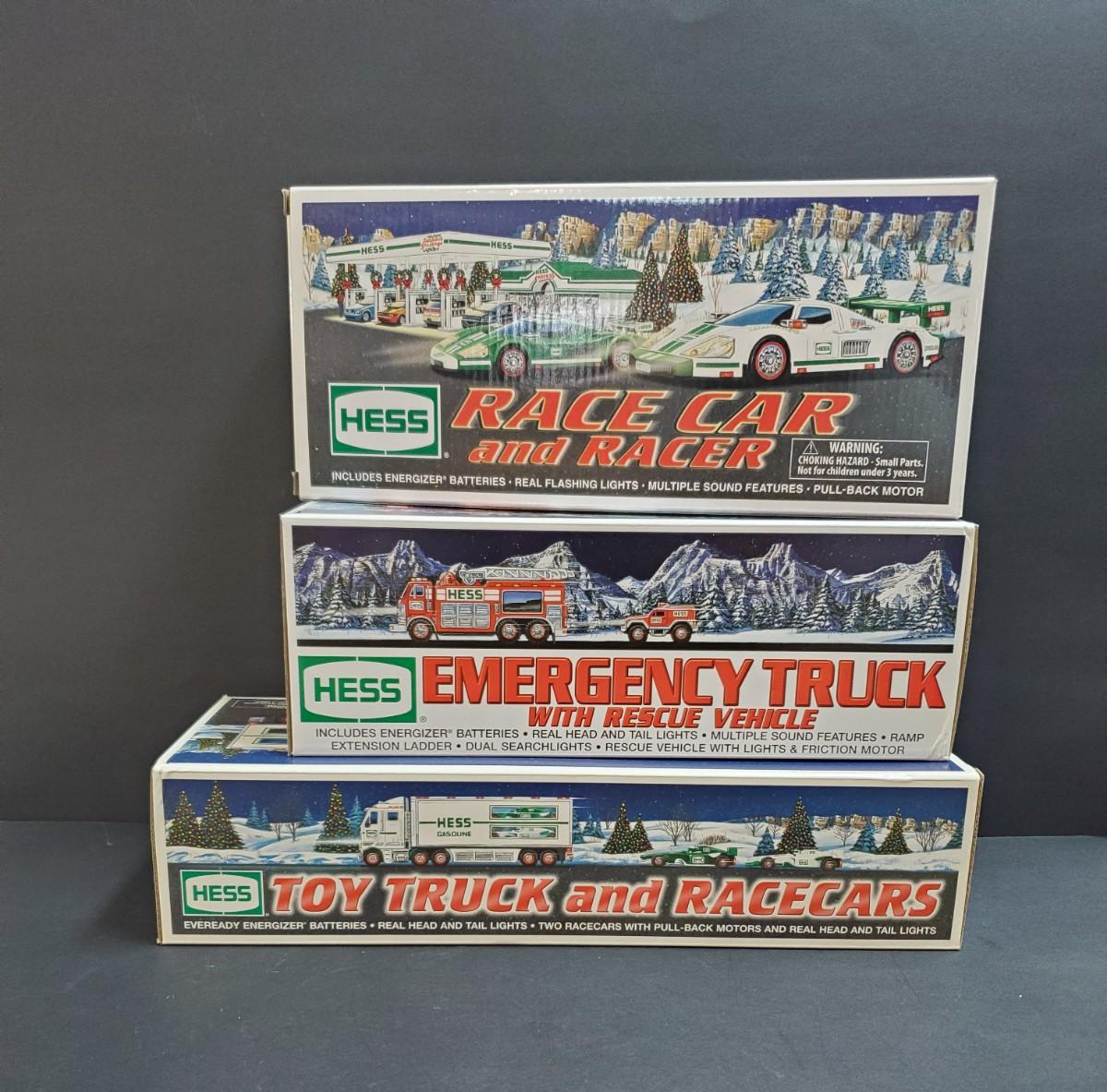 LOT 22G: Vintage Hess Vehicles: Emergency Truck, Racecar, Toy Truck and Racer