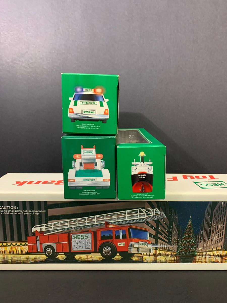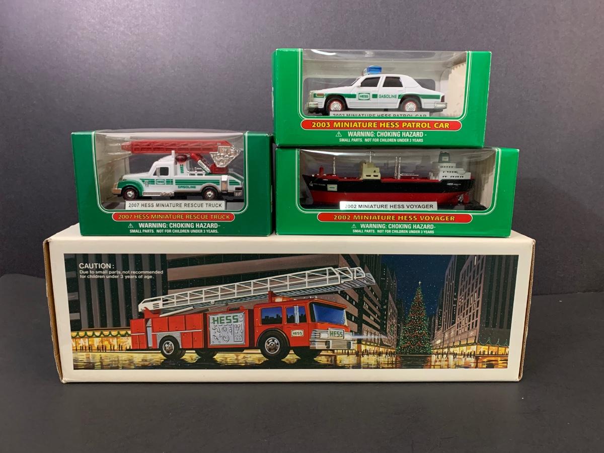 LOT 36R: Hess Fire Truck  & Miniature Car, Truck & Boat w/Original Boxes