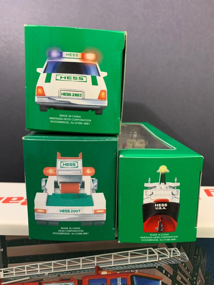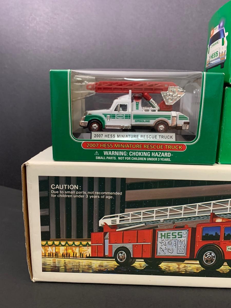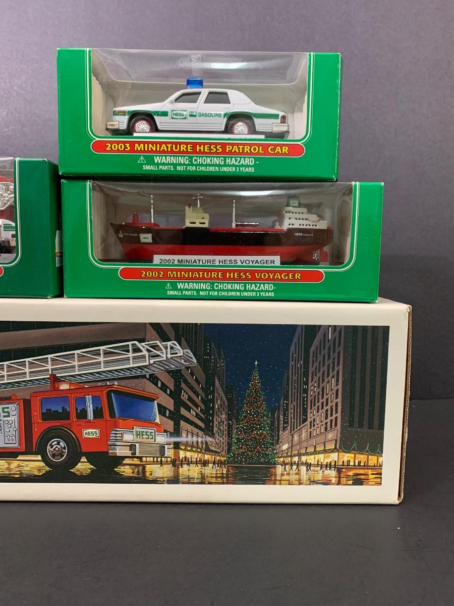 LOT 36R: Hess Fire Truck & Miniature Car, Truck & Boat w/Original Boxes