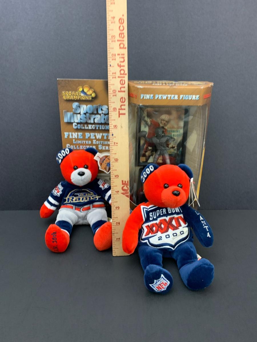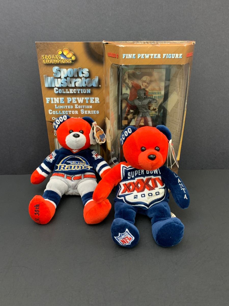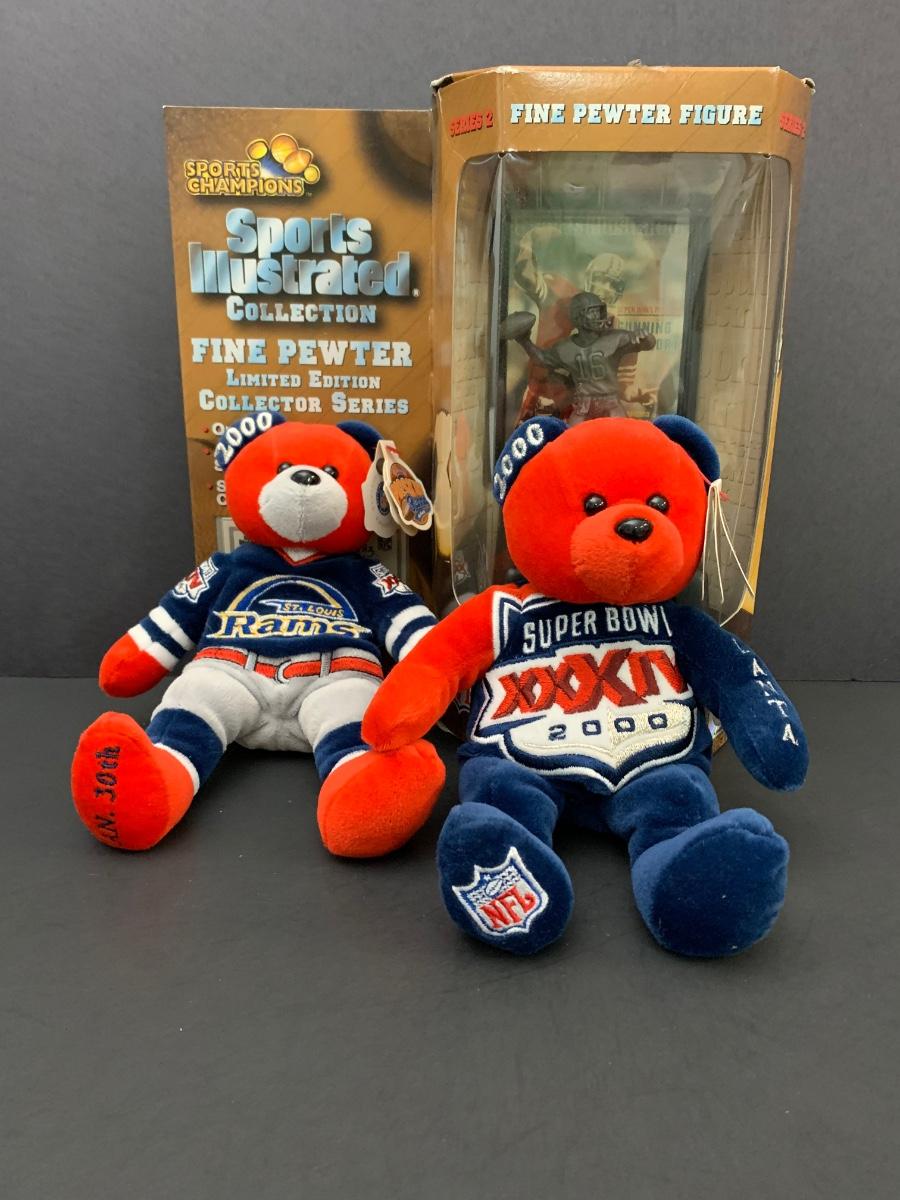 LOT 56R: Sports Illustrated Collection Pewter Figure &  Authentic Pigskin Super Bowl Bears