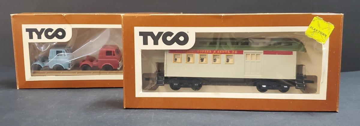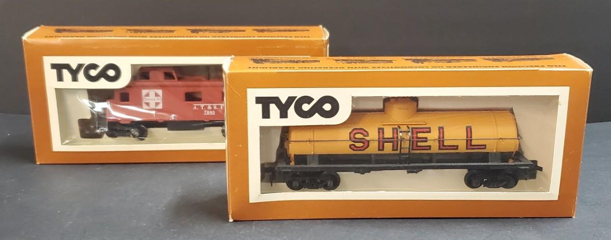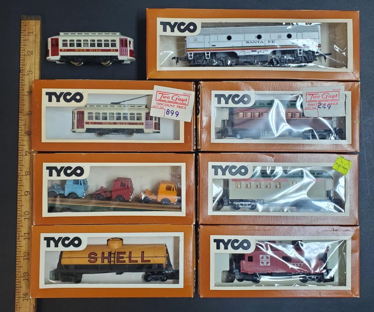 LOT 60G: Assortment of Vintage TYCO Trains, Train Cars, and Cabooses
