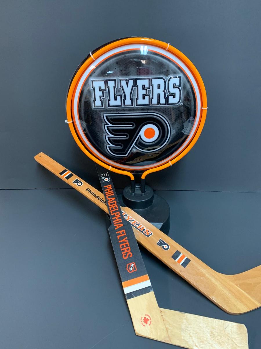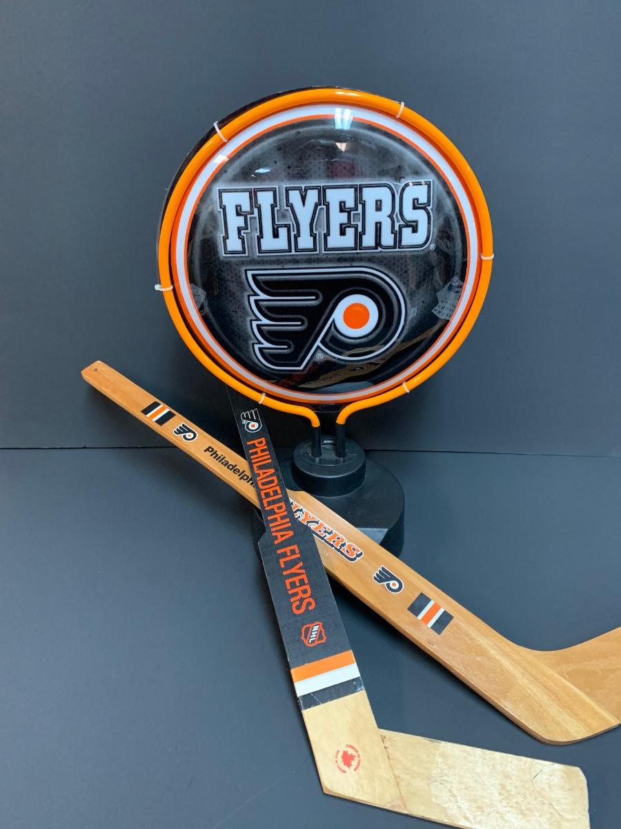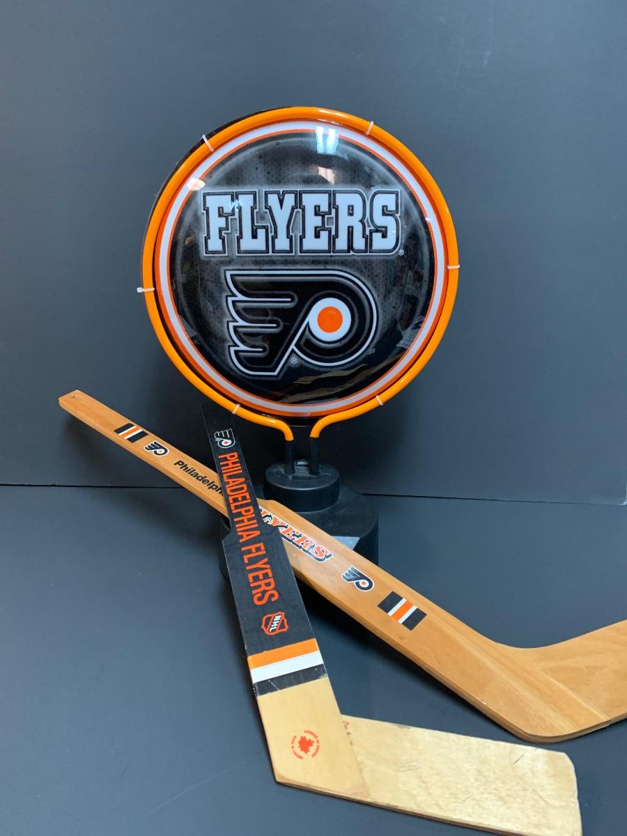 LOT 83R:  Man Cave Accessories: Flyer Light & Souvenir Goalie Sticks