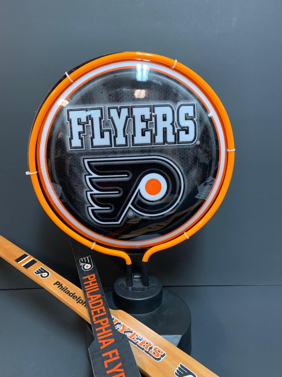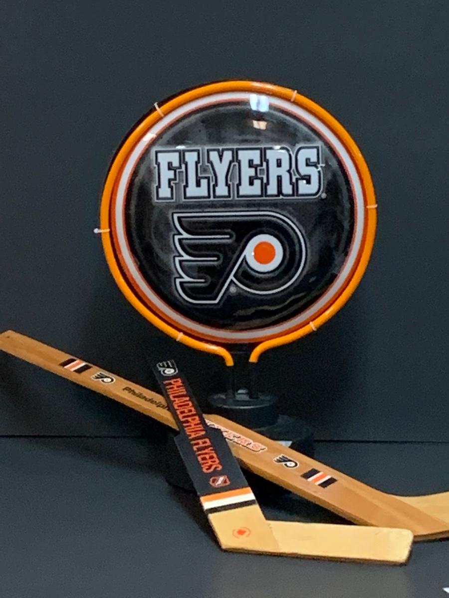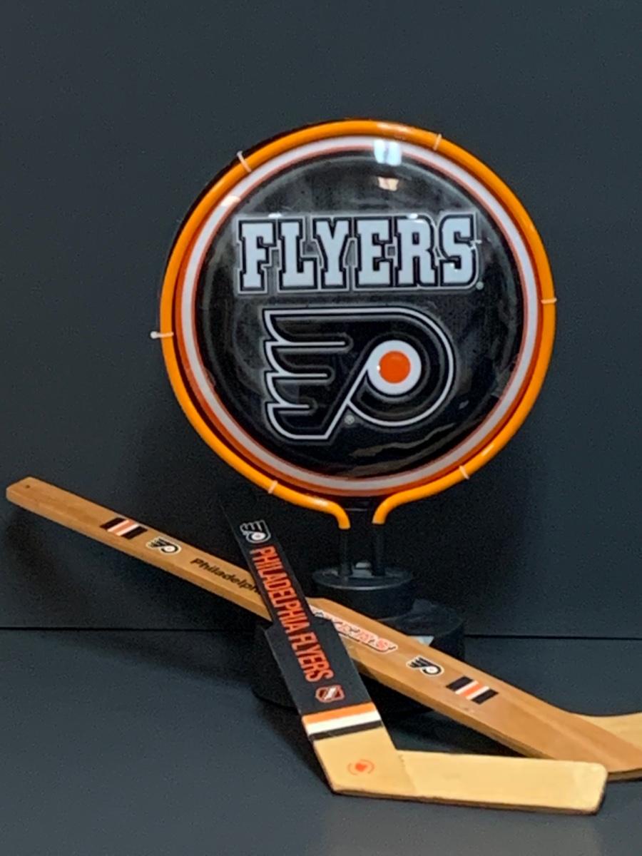 LOT 83R:  Man Cave Accessories: Flyer Light & Souvenir Goalie Sticks