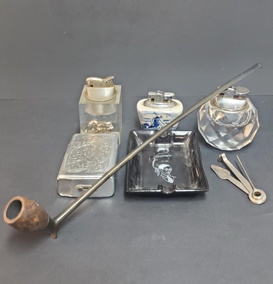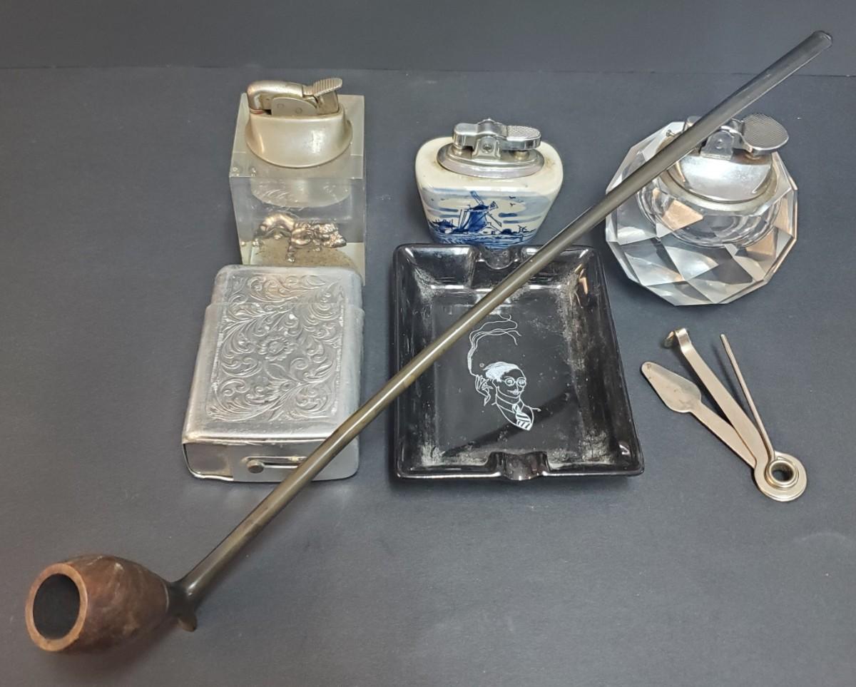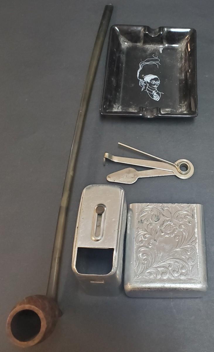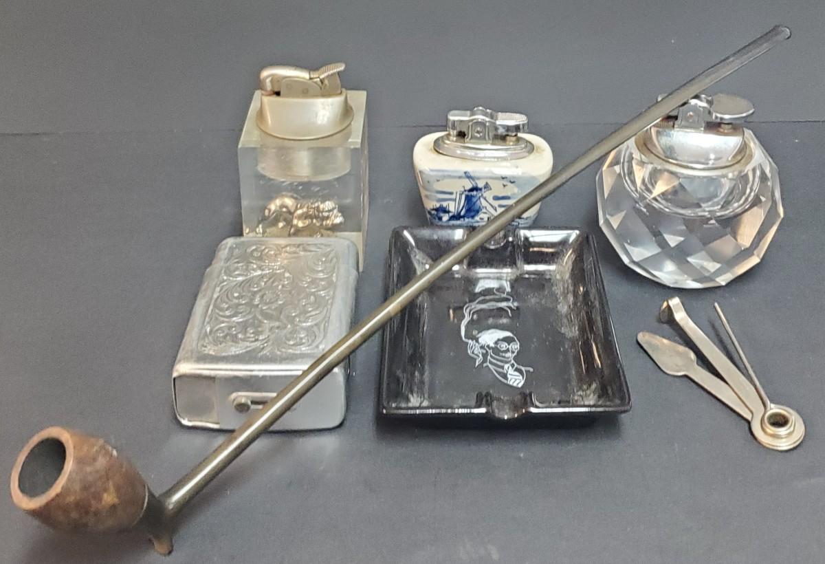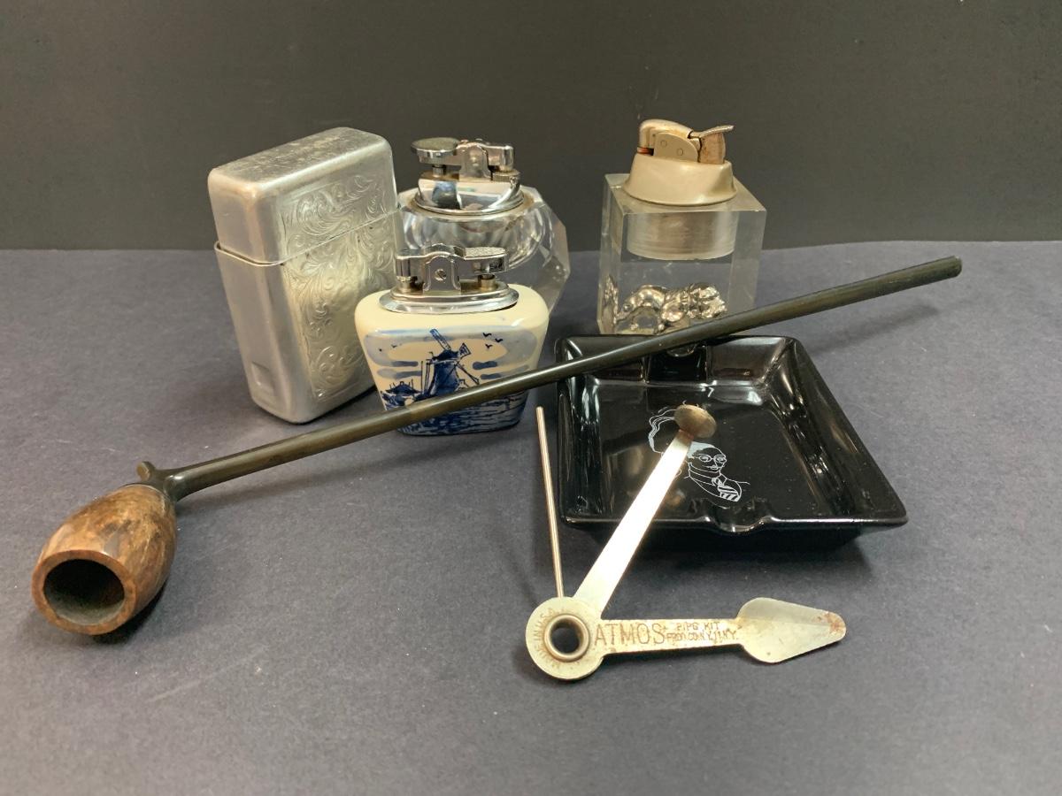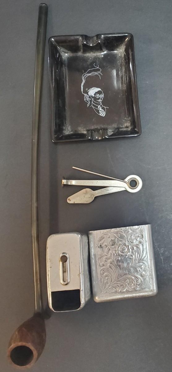 LOT 5G: Vintage Lighter, Pipe, Pipe Kit, Ash Tray, & Cigarette Case