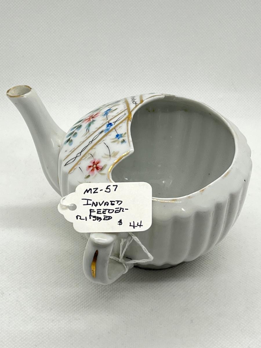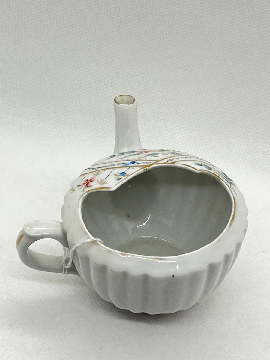 This is an "invalid feeder" which was often found in many homes late in the 19th into the 20th century. They were used to facilitate the feeding of invalids. A liquid or semi-soft food was placed in the feeder and the spout was then placed in the person's mouth. In the movie "The English Patient" the use of a feeder was shown in a brief flashback. Please see all pictures as they are the best representation of the items. The pictures show condition, measurements if taken, and what is included in the lot. Due to the large amount that we photograph and the time frame, we are not always able to take measurements. All items unless noted, are pre-owned and have been used. If you purchased furniture, you must bring help. We do not allow one person to carry large furniture out on their own. Bring help, tools and a truck for the safety of our client’s homes, and your personal safety. Any damages that result to the property including walls, and floors due to moving of the furniture will be charged to the buyer. Company policy. Thank you.