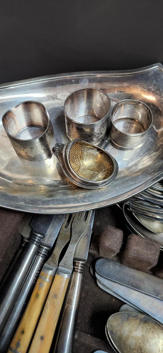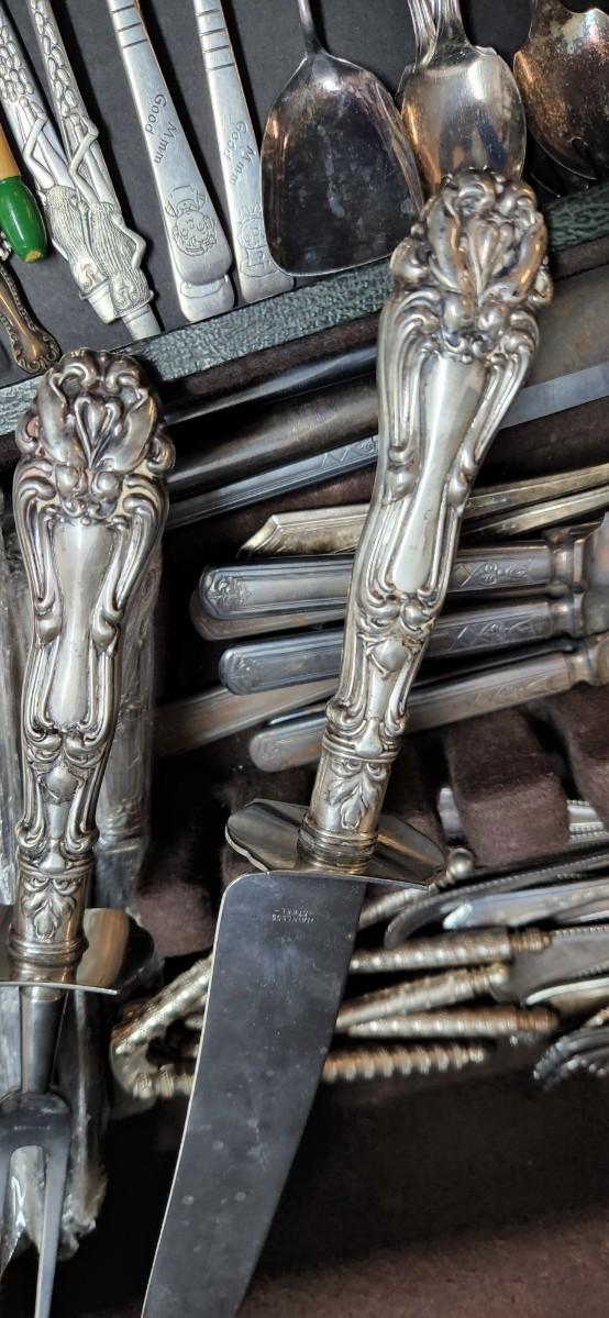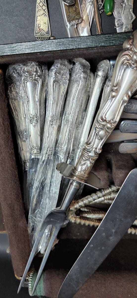 This a huge collection of so many unique and beautiful pieces. Some Art Deco, Art Nouveau, and at least one Sterling piece. This collection is waiting to be thoroughly researched to see what treasures may be hidden. You are getting everything you see in the pictures, including this beautiful antique Gorham flatware case. Please see all pictures as they are the best representation of the items. The pictures show condition, measurements if taken, and what is included in the lot. Due to the large amount that we photograph and the time frame, we are not always able to take measurements. All items unless noted, are pre-owned and have been used. If you purchased furniture, you must bring help. We do not allow one person to carry large furniture out on their own. Bring help, tools and a truck for the safety of our client’s homes, and your personal safety. Any damages that result to the property including walls, and floors due to moving of the furniture will be charged to the buyer. Company policy. Thank you.