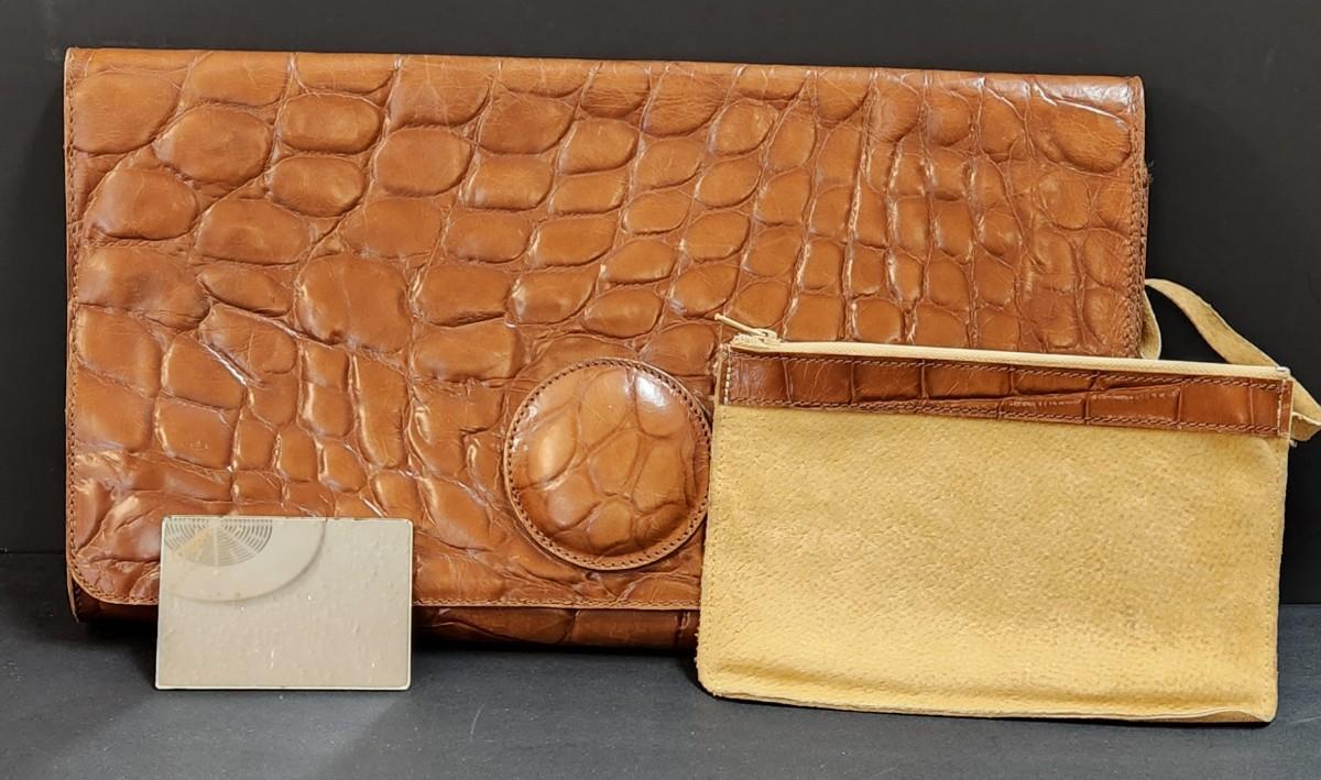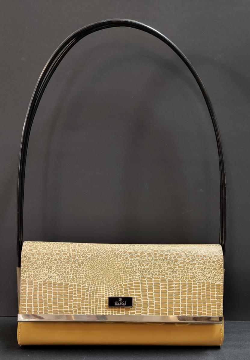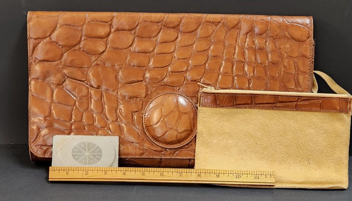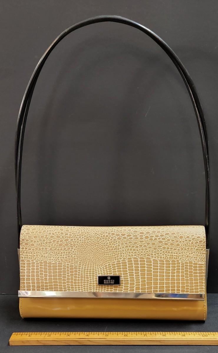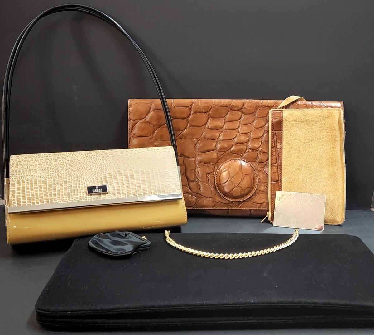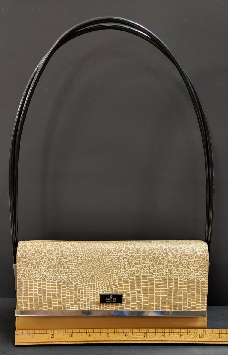 You are bidding on three vintage handbags. One being a "Gucci" (most likely a vintage reproduction). Even if it is a reproduction, it still screams chicness and sophistication. It is most likely made of a pattened vinyl material. Please note: the lining in the "Gucci" bag has rips in the seams on the inside, a scuff on the bottom (pictured), and a broken zipper. The two envelope Clutches are in great condition and very spacious, both with working zippers. The brown clutch was made in France and most likely real leather, also comes with a cute make-up bag. Please see all pictures as they are the best representation of the items. The pictures show condition, measurements if taken, and what is included in the lot. Due to the large amount that we photograph and the time frame, we are not always able to take measurements. All items unless noted, are pre-owned and have been used. If you purchased furniture, you must bring help. We do not allow one person to carry large furniture out on their own. Bring help, tools and a truck for the safety of our client’s homes, and your personal safety. Any damages that result to the property including walls, and floors due to moving of the furniture will be charged to the buyer. Company policy. Thank you.