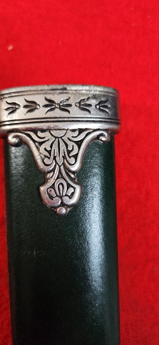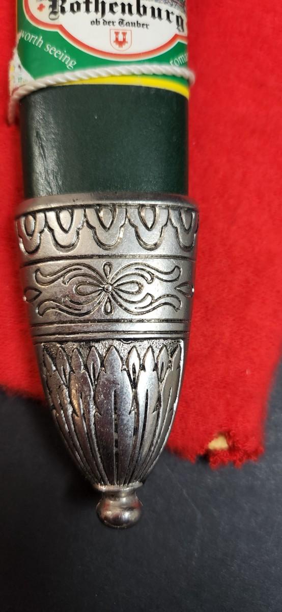 Rothenberg dagger with sheath and felt mounting board. This dagger has exquisite filigree detail on the dagger and sheath. It's in beautiful condition however there is a very small amount of tarnishing. Also, this blade does not have sharp edges. Please see all pictures as they are the best representation of the items. The pictures show condition, measurements if taken, and what is included in the lot. Due to the large amount that we photograph and the time frame, we are not always able to take measurements. All items unless noted, are pre-owned and have been used. If you purchased furniture, you must bring help. We do not allow one person to carry large furniture out on their own. Bring help, tools and a truck for the safety of our client’s homes, and your personal safety. Any damages that result to the property including walls, and floors due to moving of the furniture will be charged to the buyer. Company policy. Thank you.
