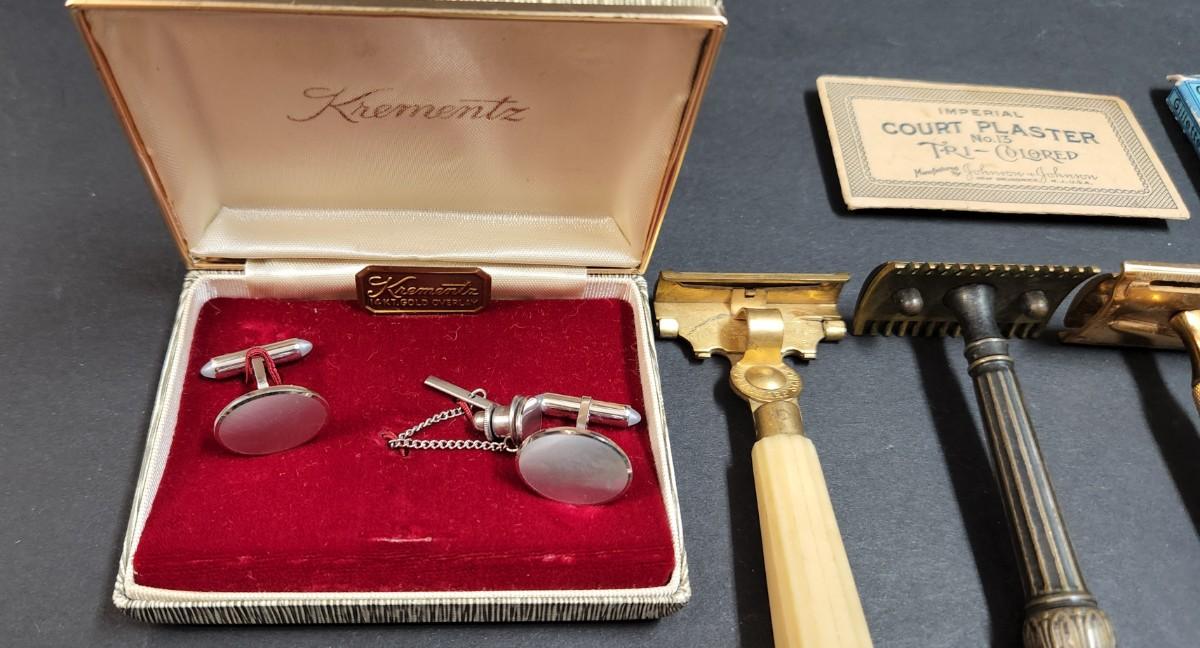 In this large lot, you are getting a variety of Gillette and Schick razors plus accessories, a set of Krementz cufflinks and tietack, a leather wallet (not vintage), and more! Items are in various states of used condition. Please see all pictures as they are the best representation of the items. The pictures show condition, measurements if taken, and what is included in the lot. Due to the large amount that we photograph and the time frame, we are not always able to take measurements. All items unless noted, are pre-owned and have been used. If you purchased furniture, you must bring help. We do not allow one person to carry large furniture out on their own. Bring help, tools and a truck for the safety of our client’s homes, and your personal safety. Any damages that result to the property including walls, and floors due to moving of the furniture will be charged to the buyer. Company policy. Thank you.