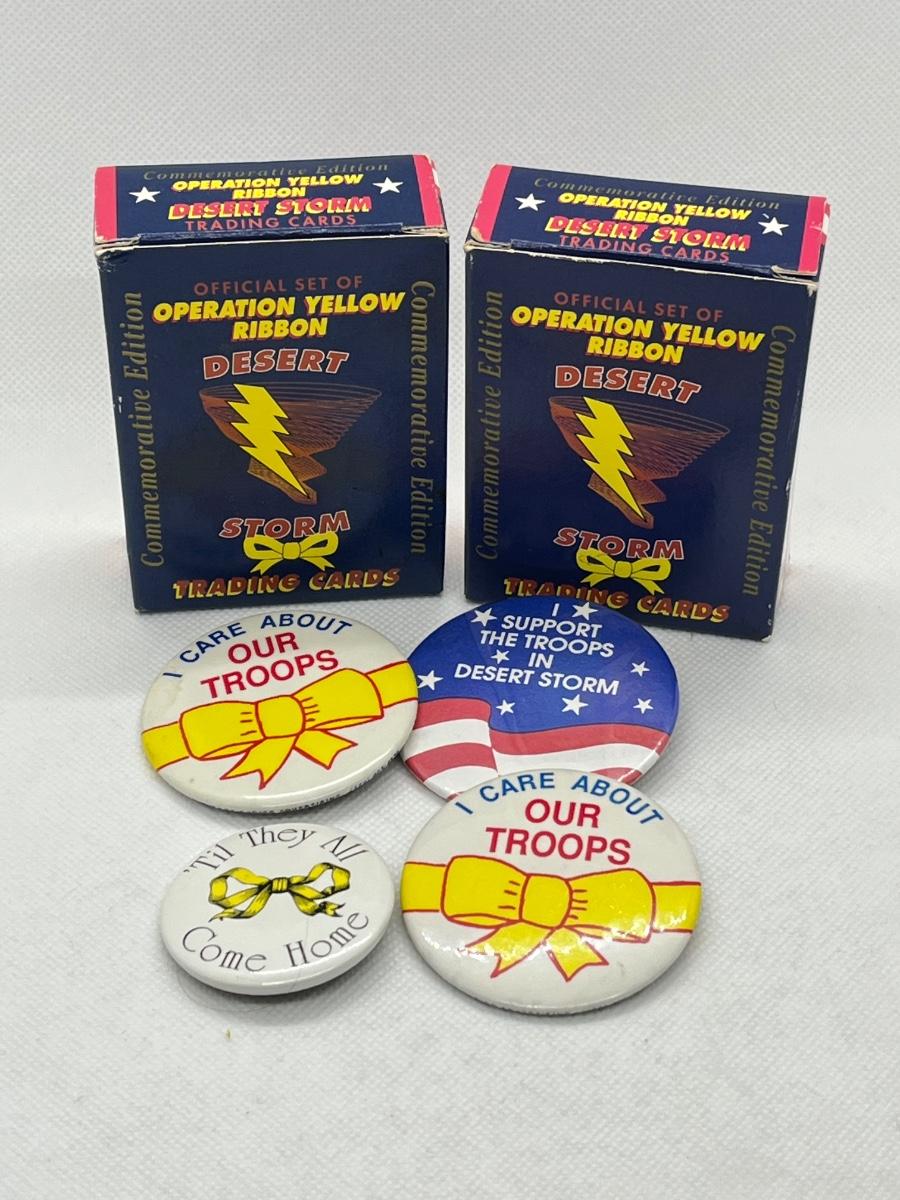 Desert Storm Iraq War trading trading cards and pin back buttons