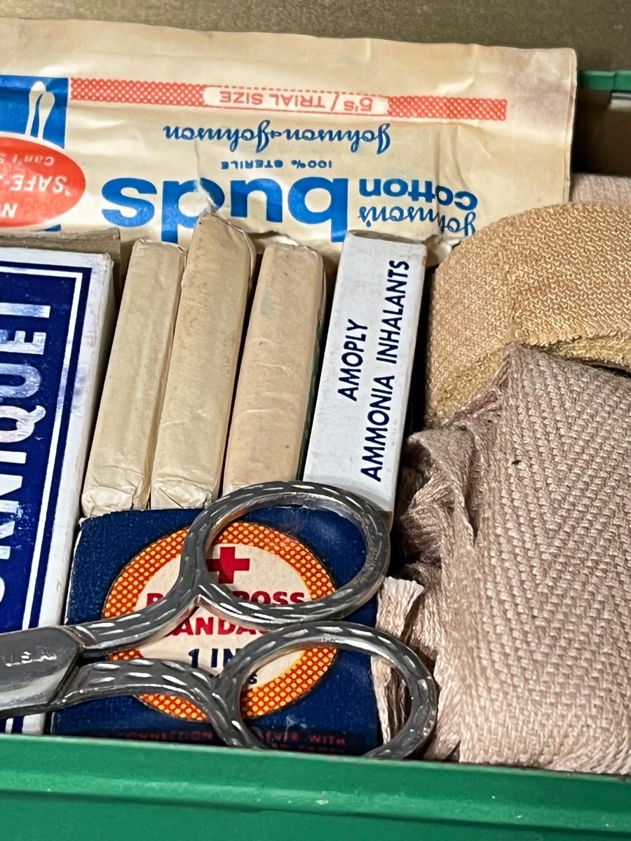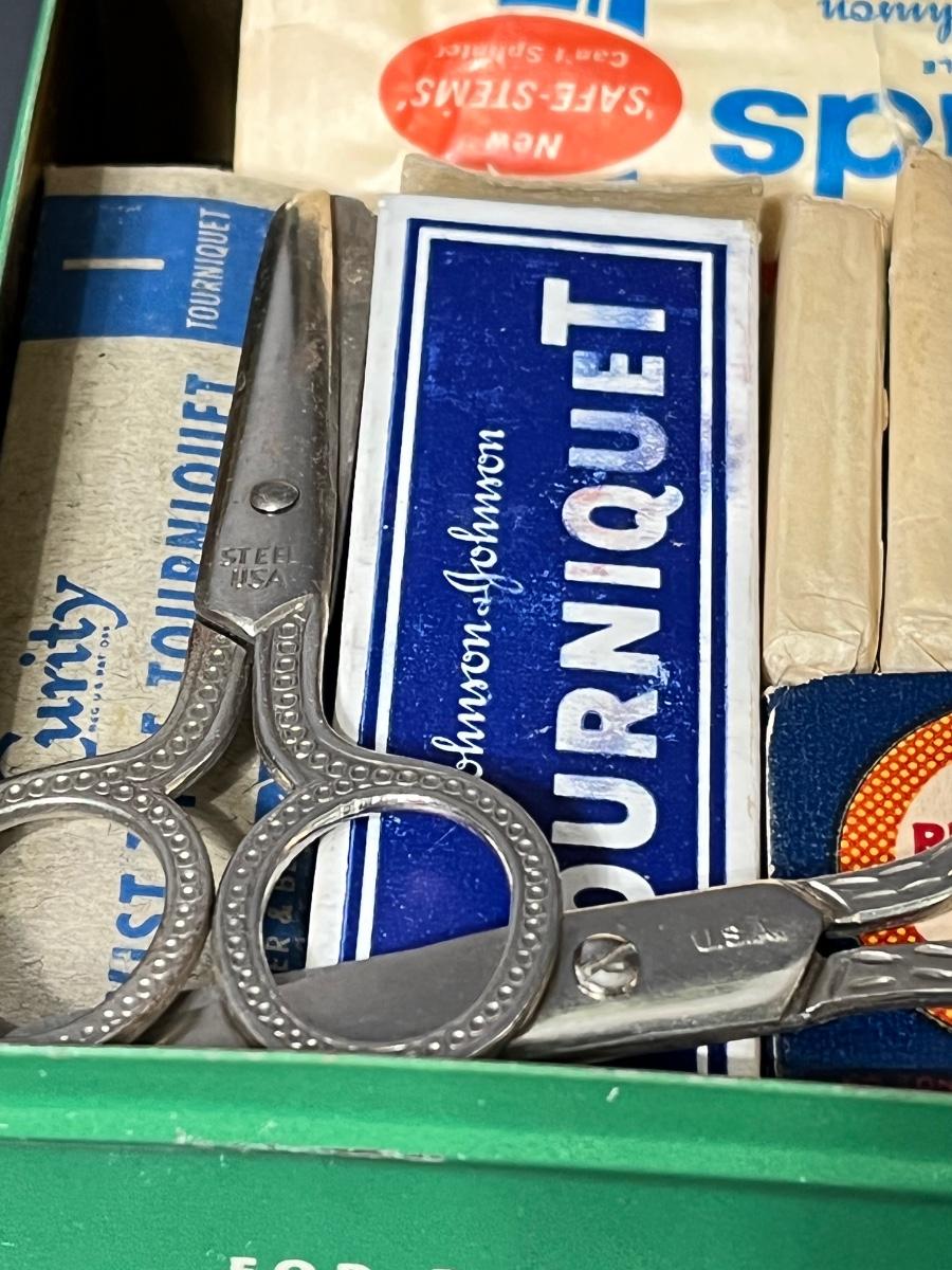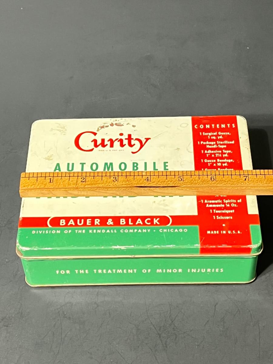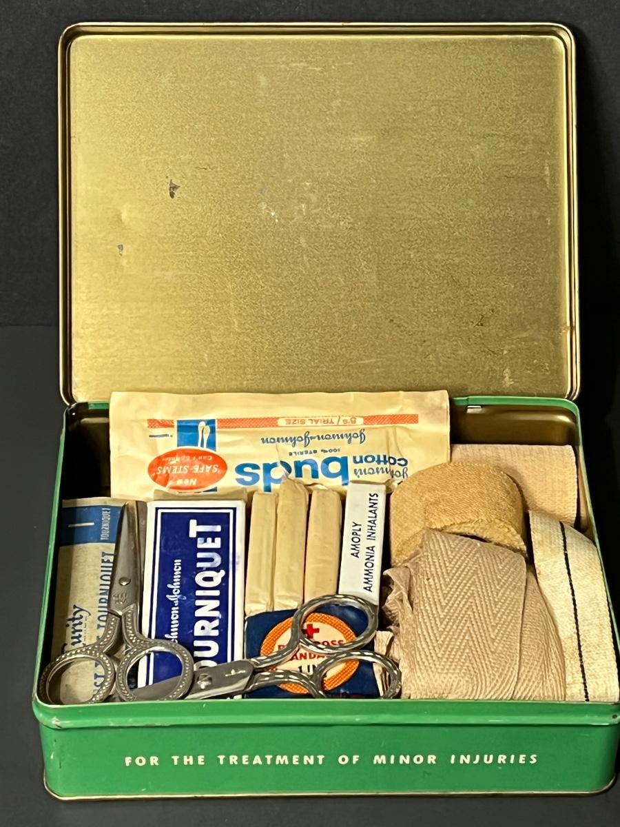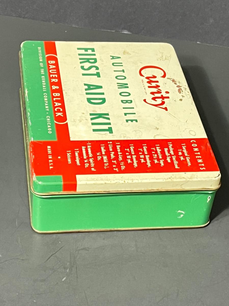 LOT 59: Vintage Automotive Items - Horn, First Aid Kit, Postcards & More