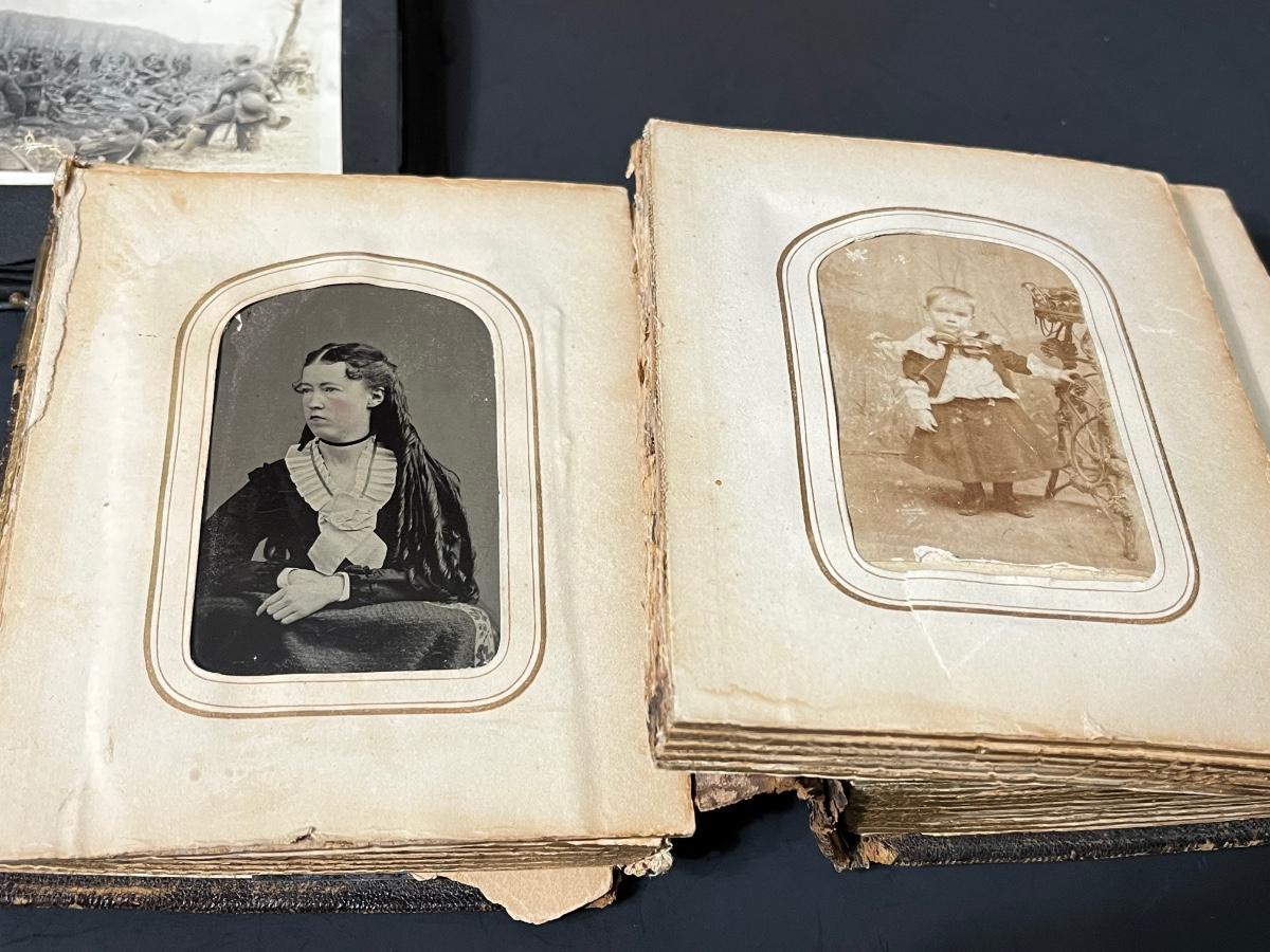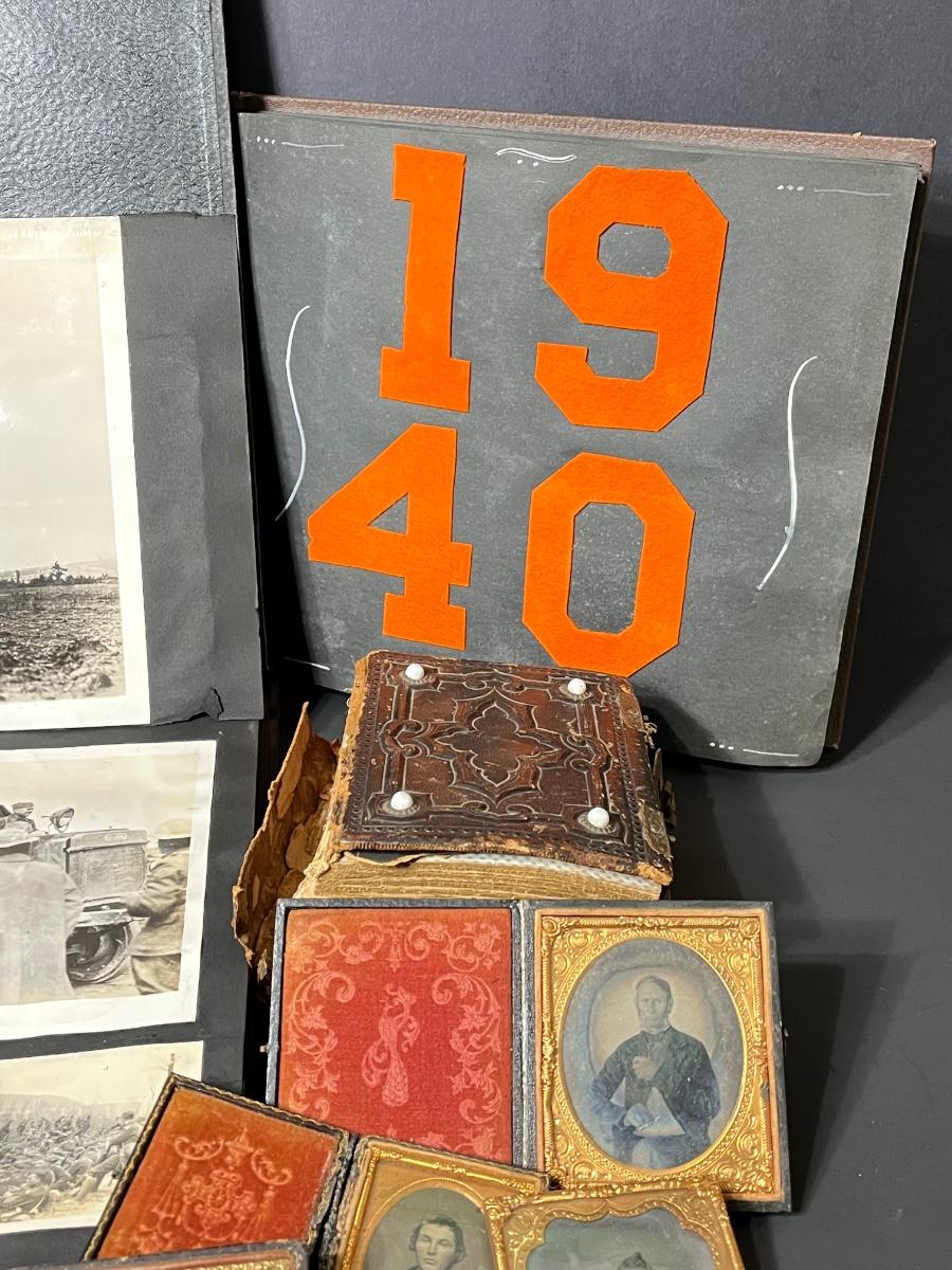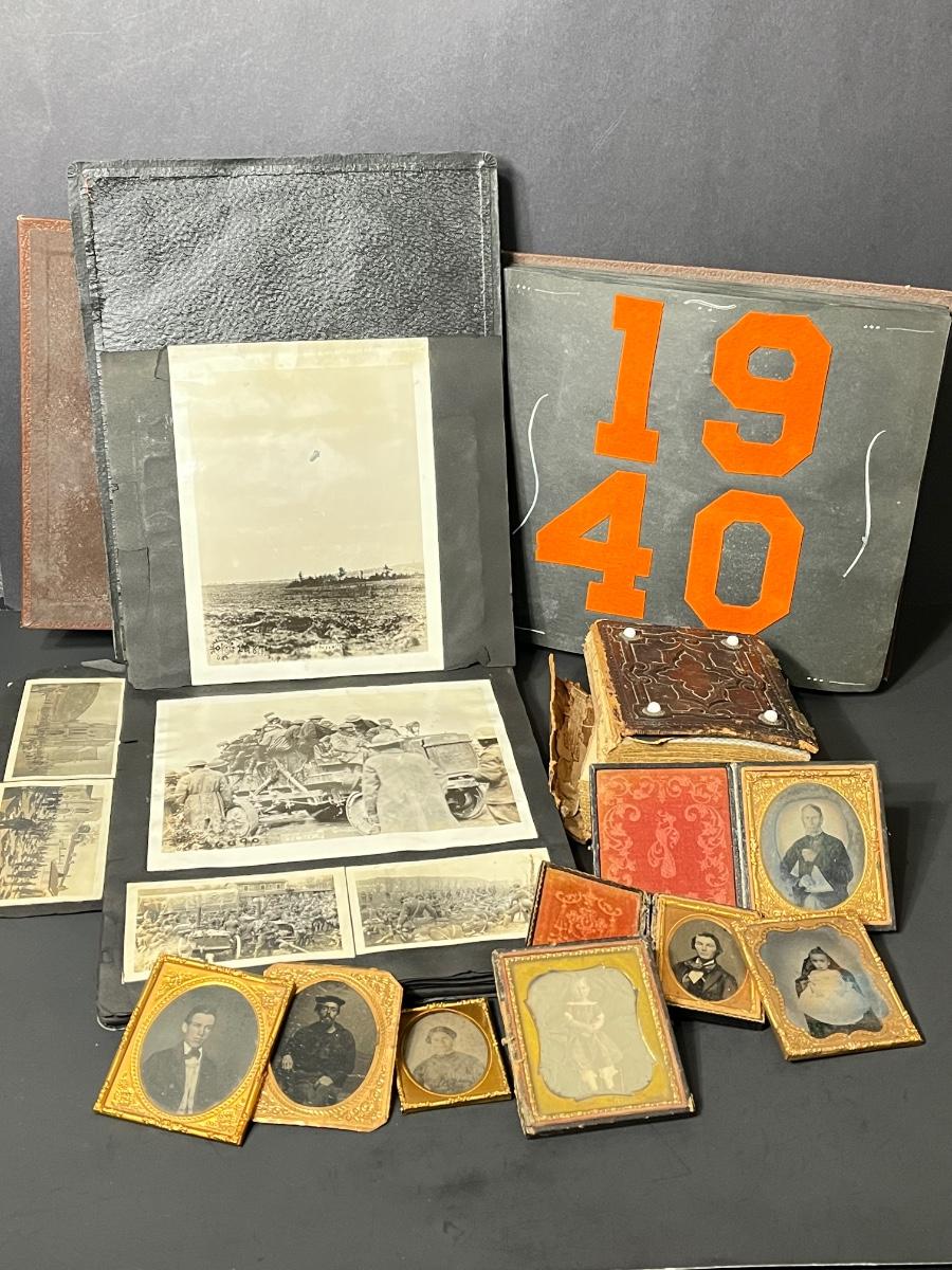 LOT 60: Vintage/Antique Photos, Tin Types, Albums, Frames, Local Scrapbook