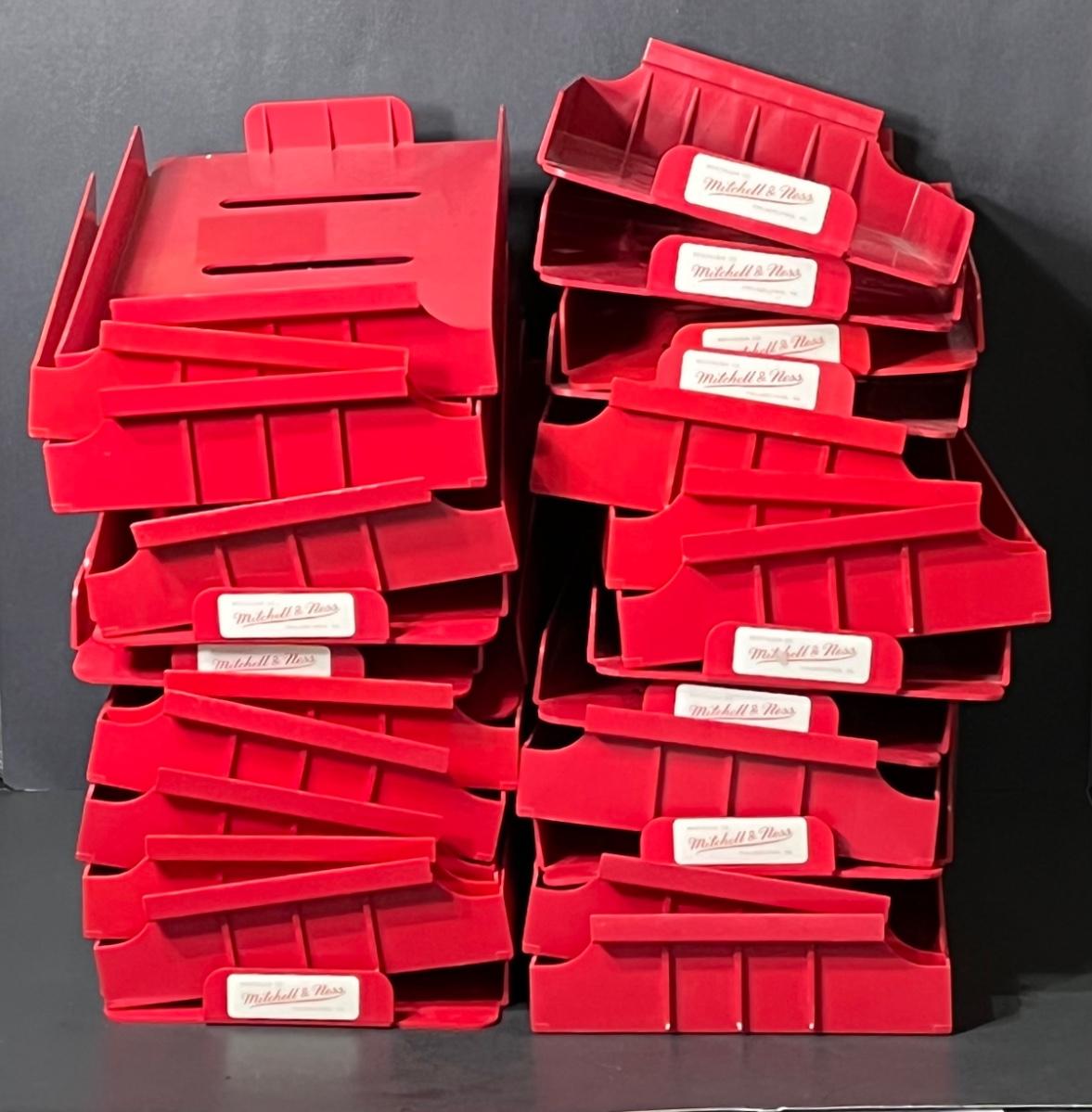 Plastic Commercial Shelving - more than 20 shelves - used in a sporting good store for hats. Shelves click into a rack system - lot is for red plastic shelves only - wood wall unit not included. Levon Helm hat not included. , Please see all pictures as they are the best representation of the items. The pictures show condition, measurements if taken, and what is included in the lot. Due to the large amount that we photograph and the time frame, we are not always able to take measurements. All items unless noted, are pre-owned and have been used. If you purchased furniture, you must bring help. We do not allow one person to carry large furniture out on their own. Bring help, tools and a truck for the safety of our client’s homes, and your personal safety. Any damages that result to the property including walls, and floors due to moving of the furniture will be charged to the buyer. Company policy. Thank you.