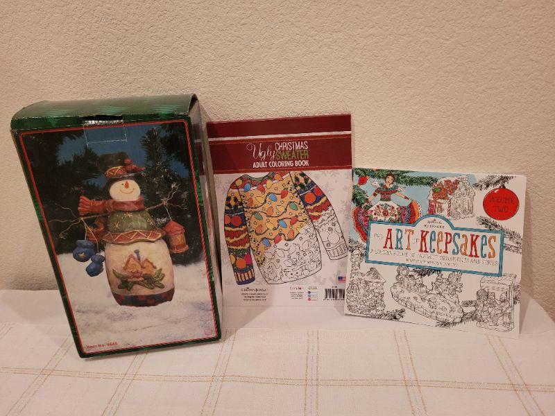 Lot 752: Assorted Christmas Coloring Books and Snowman Deco