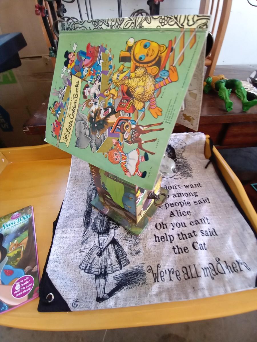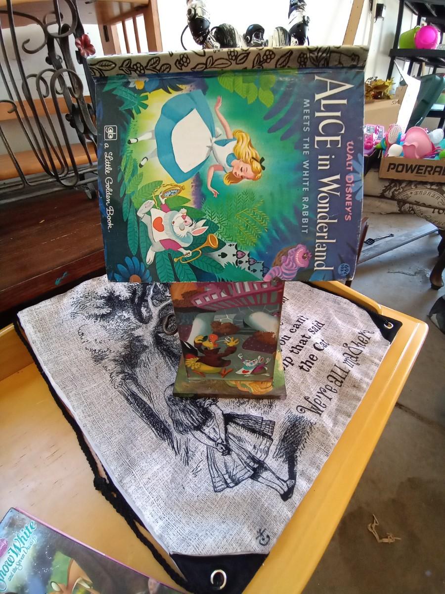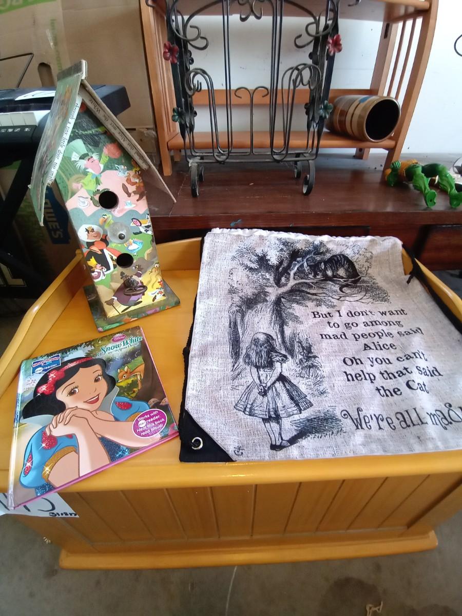 ADORABLE DISNEY THEMED BIRDHOUSE-HANGING CLOTH ALICE IN WONDERLAND DECOR AND SNOW-WHITE READER