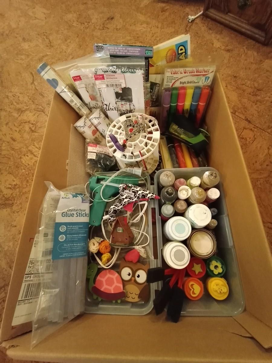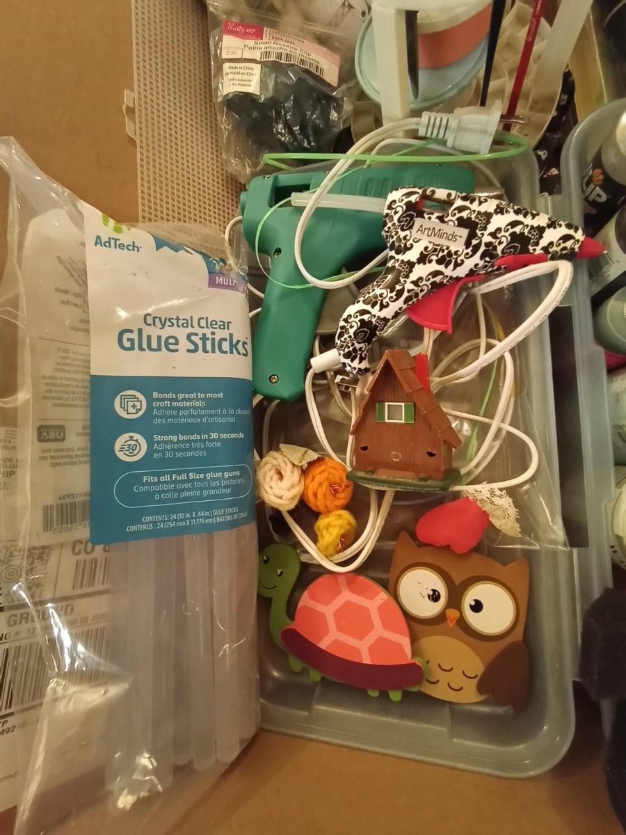 CRAFT SUPPLIES-PAINTS-BRUSH HOLDER-GLUE GUN AND GLUE STICKS-FABRIC BRUSH MARKERS AND MORE