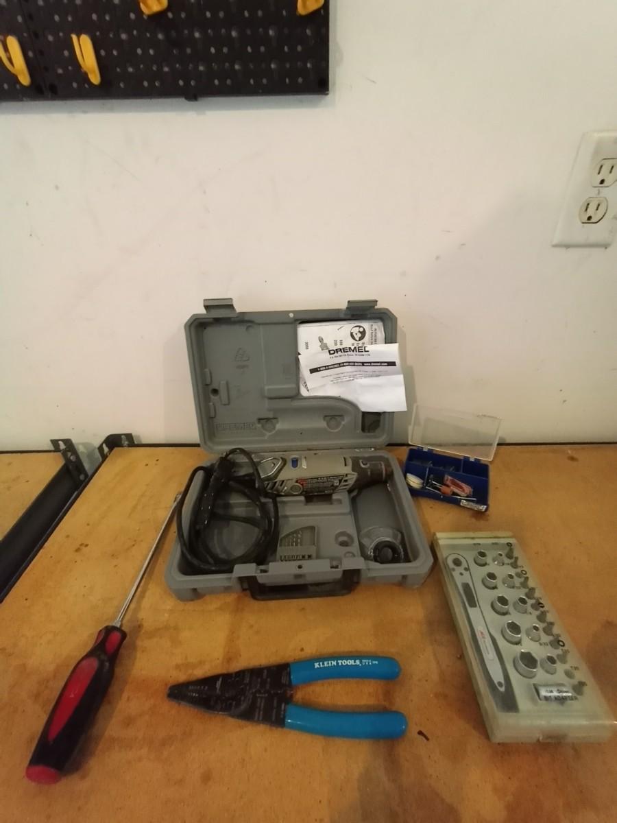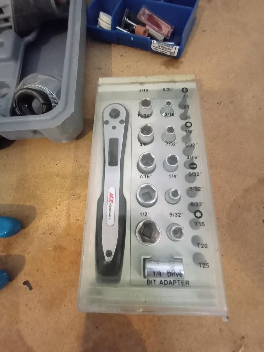 DREMMEL3000 IN CASE AND ATTACHMENTS-LONG SCREWDRIVER- AND ACE SOCKET SET