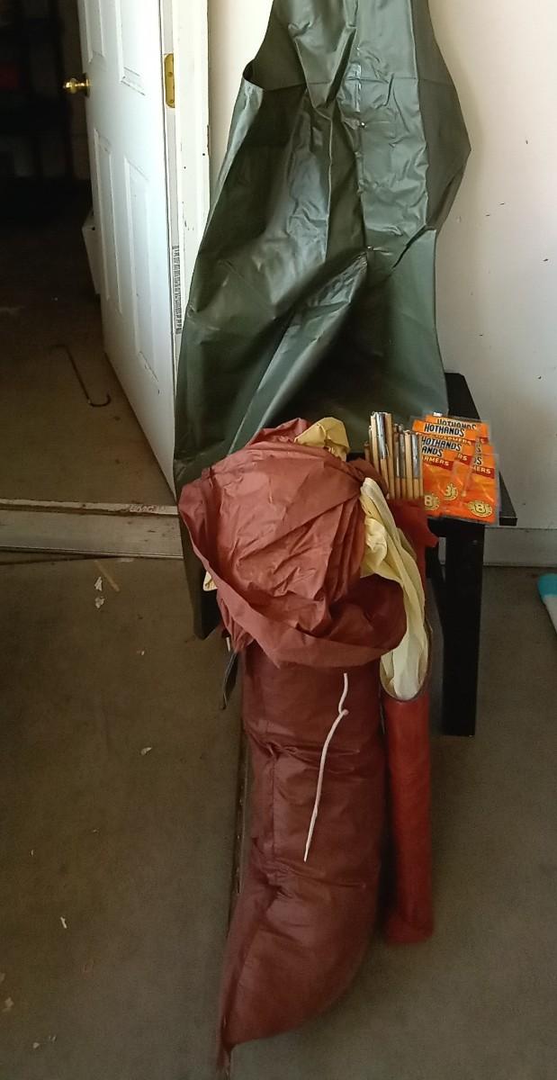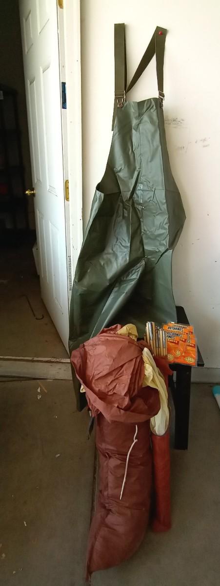 SMALL PUP TENT-BIB WADERS LARGE SIZE-HAND WARMERS
