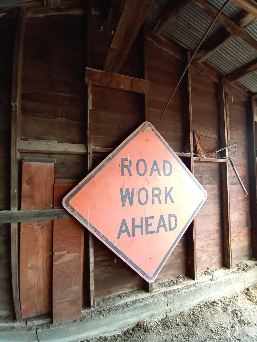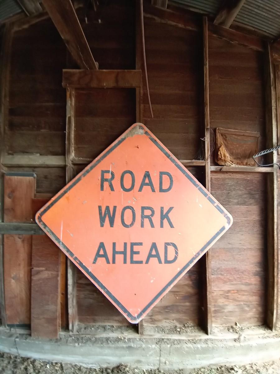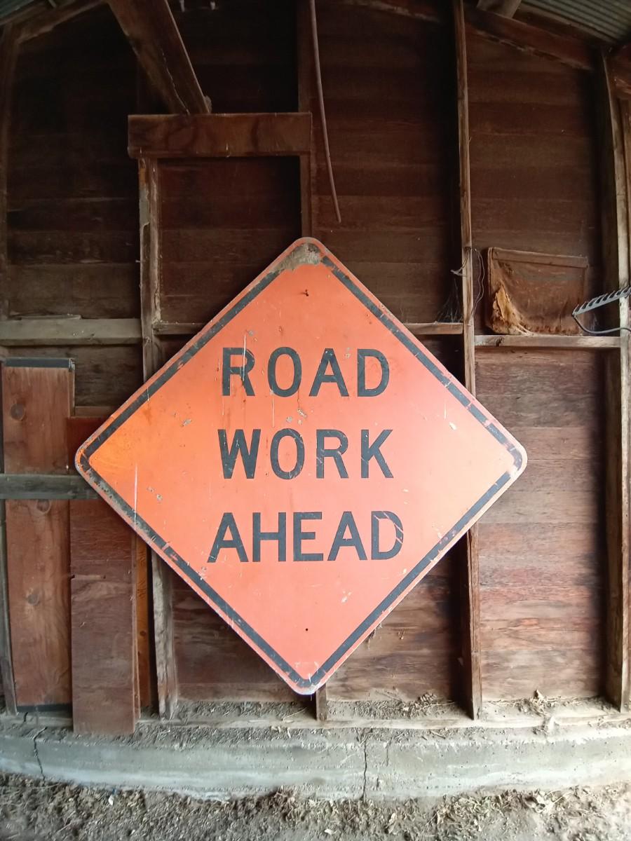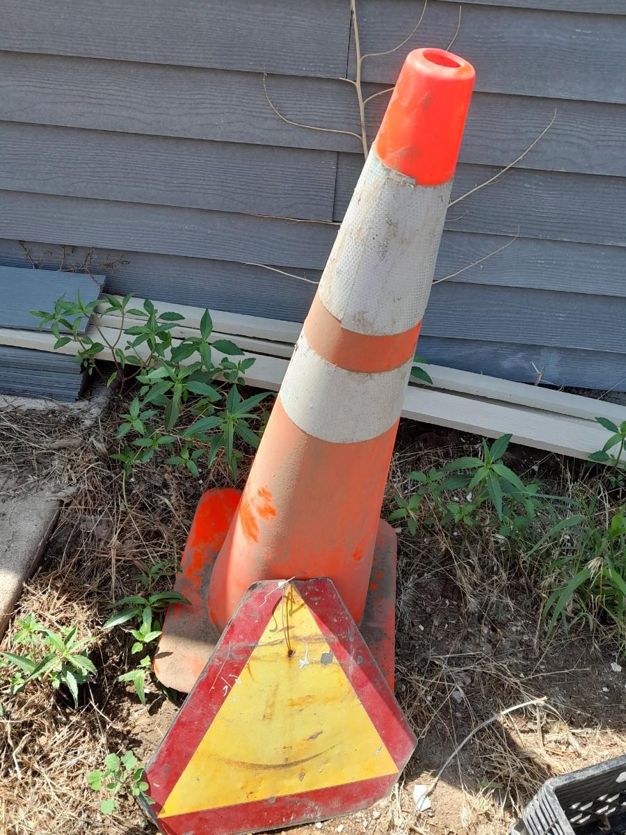 METAL ROAD WORK AHEAD SIGN MEASURES 65" COMES WITH ONE TRAFFIC CONE