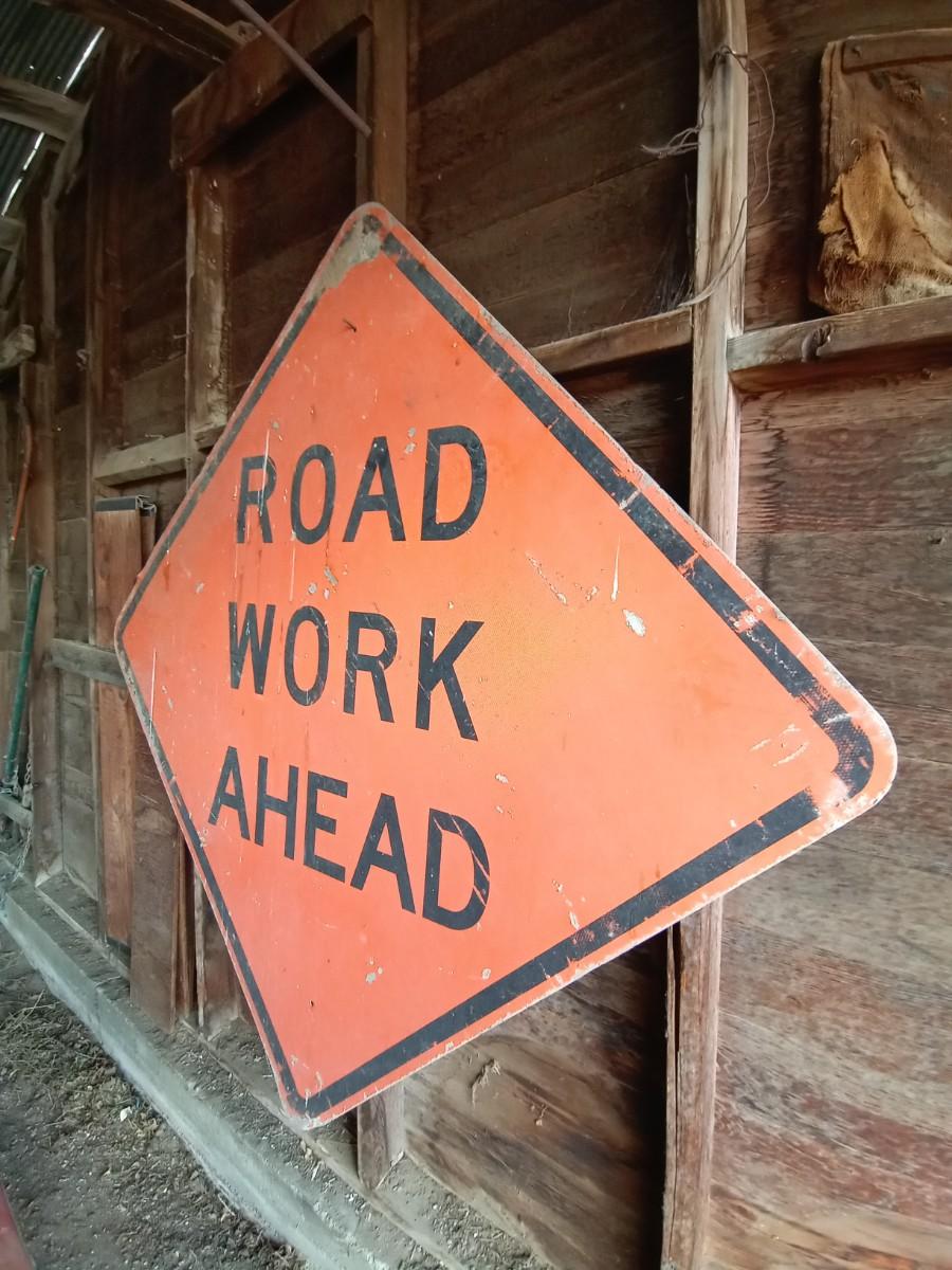 ;LOT 550 METAL ROAD WORK AHEAD SIGN WITH PYLON (NS)