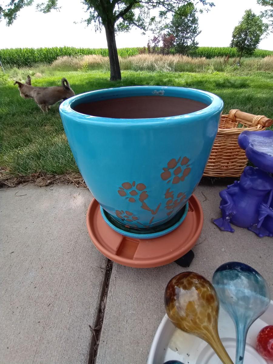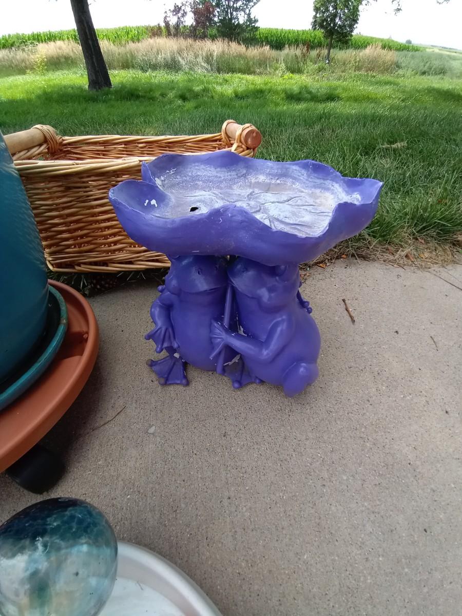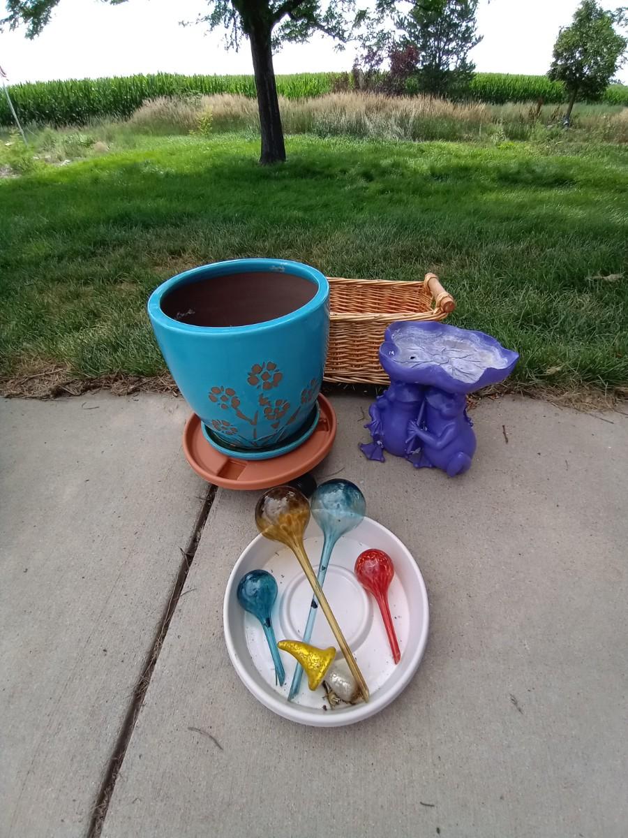 LOT 502  LARGE FLOWER POT, WATERING BULBS, FROG PLANT STAND (G)