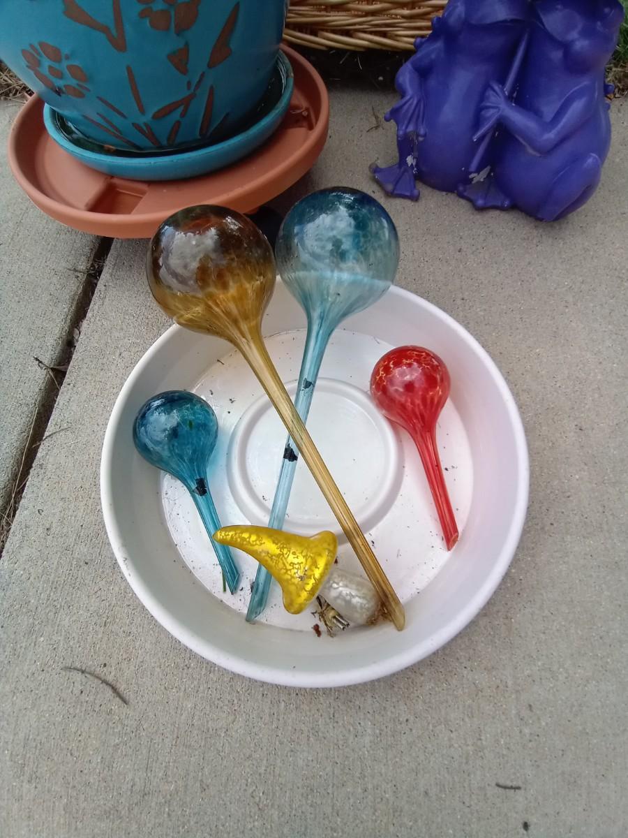 LOT 502 LARGE FLOWER POT, WATERING BULBS, FROG PLANT STAND (G)