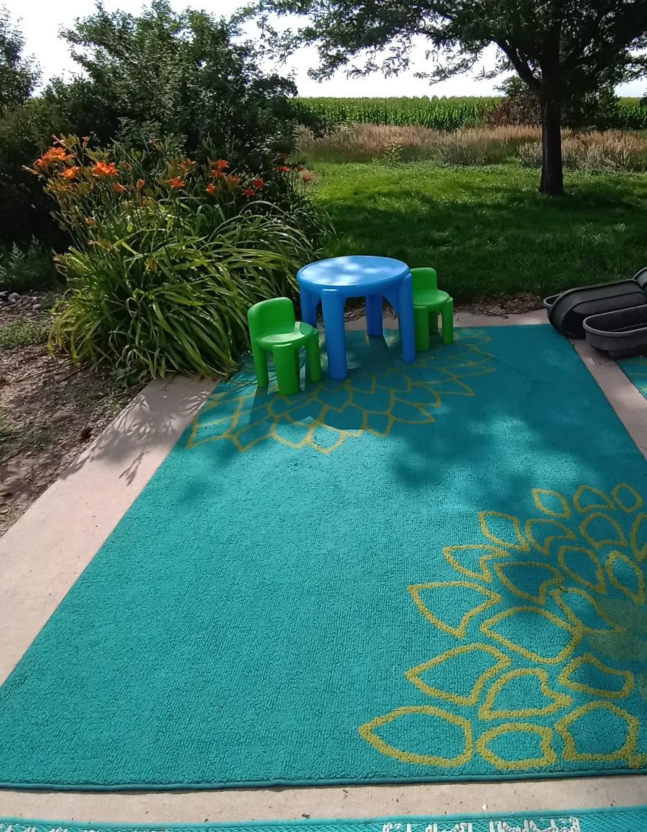 OUTDOOR RUG MEASURES 6ftx8ft TABLE MEASURES 22" ROUND