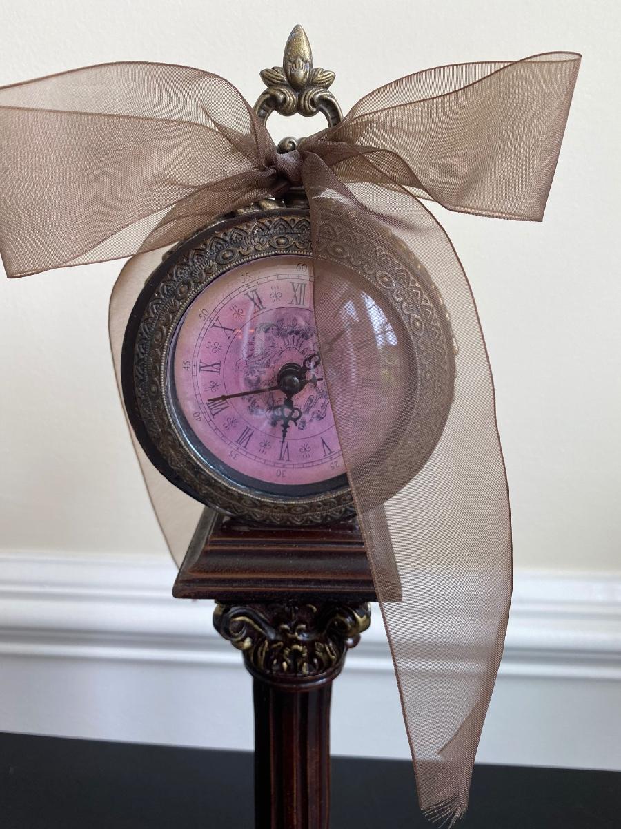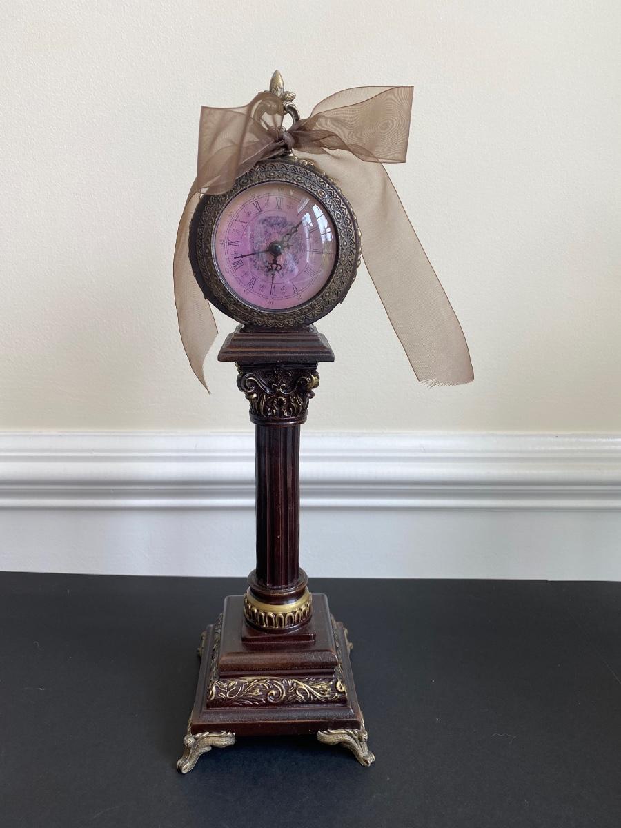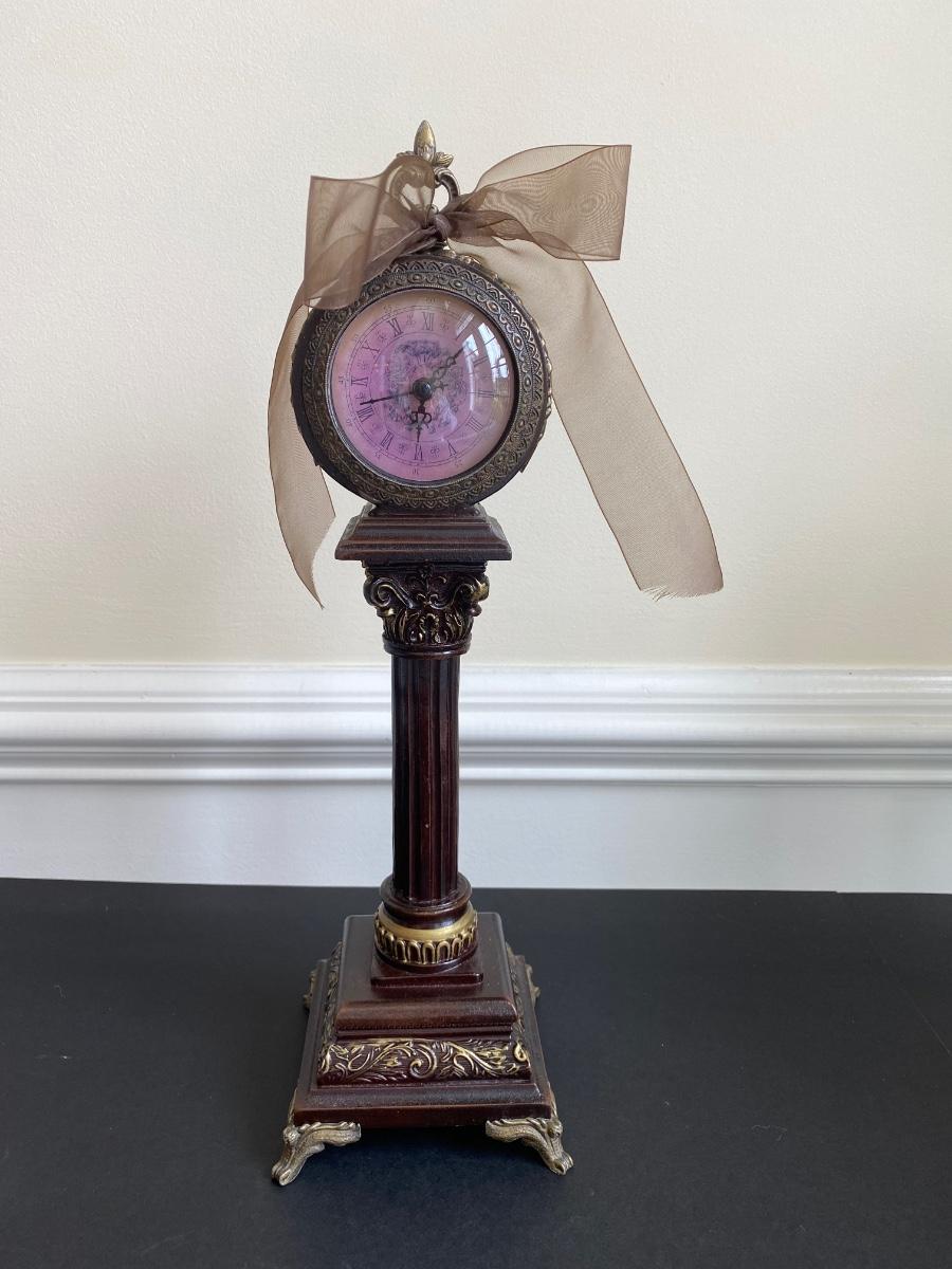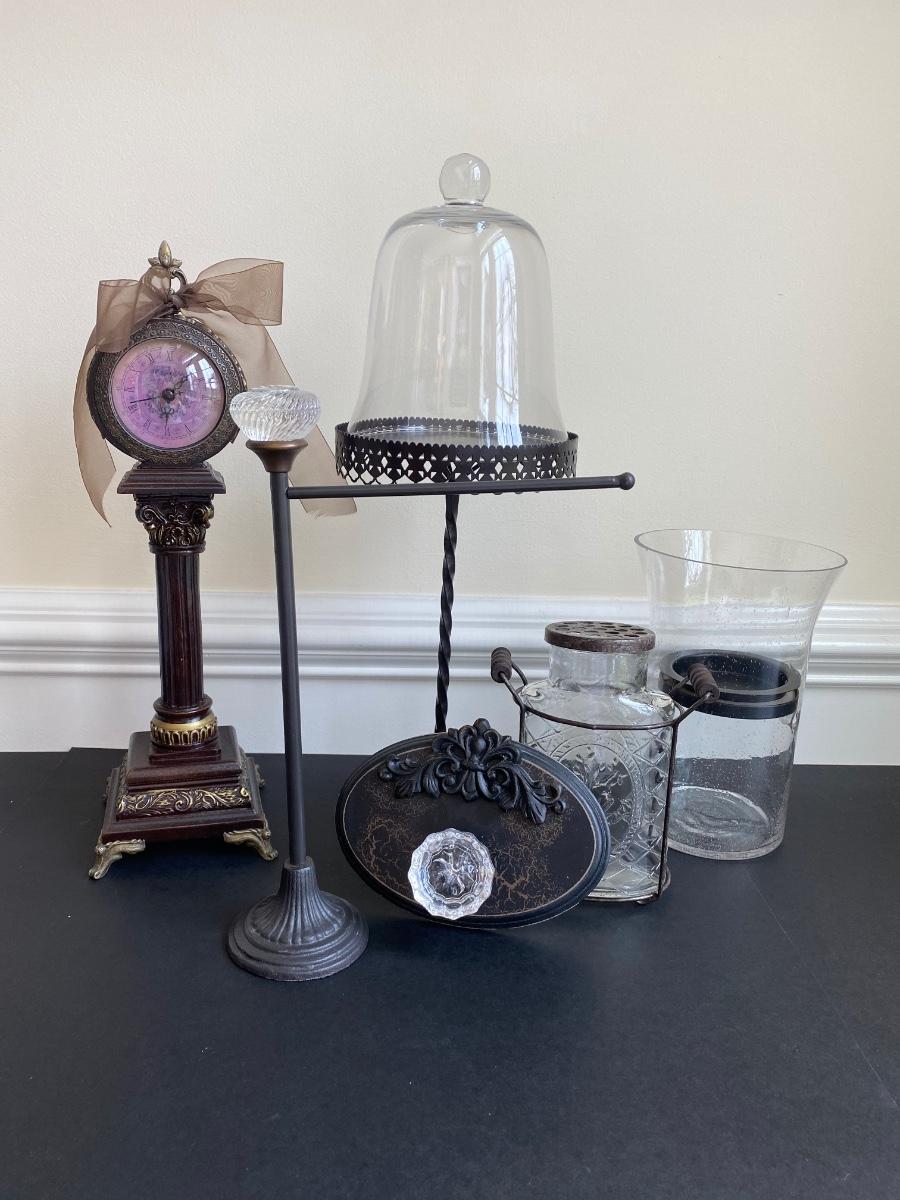 Six pieces of home accent pieces. Candle holder, tea towel or jewelry holder, clock and more. Please see all pictures as they are the best representation of the items. The pictures show condition, measurements if taken, and what is included in the lot. Due to the large amount that we photograph and the time frame, we are not always able to take measurements. All items unless noted, are pre-owned and have been used. If you purchased furniture, you must bring help. We do not allow one person to carry large furniture out on their own. Bring help, tools and a truck for the safety of our client’s homes, and your personal safety. Any damages that result to the property including walls, and floors due to moving of the furniture will be charged to the buyer. Company policy. Thank you.