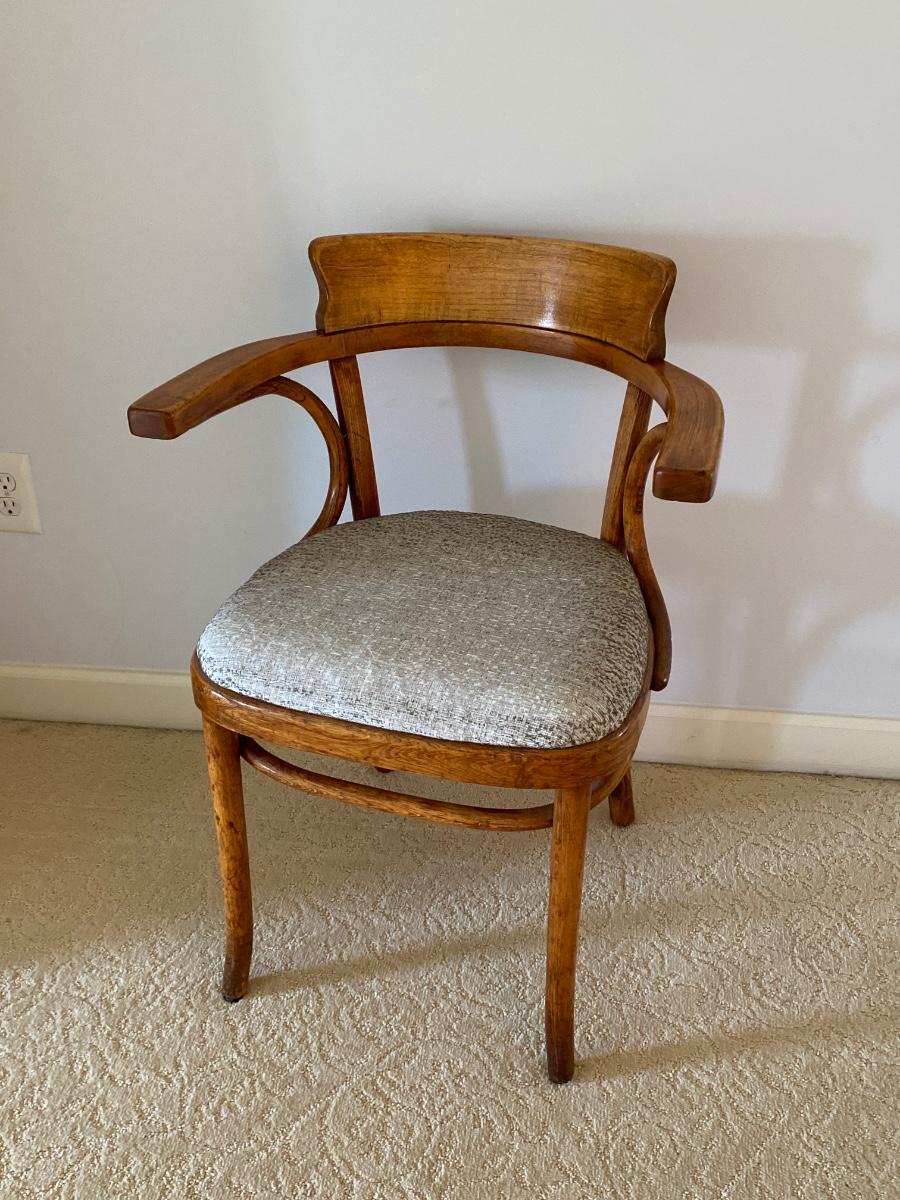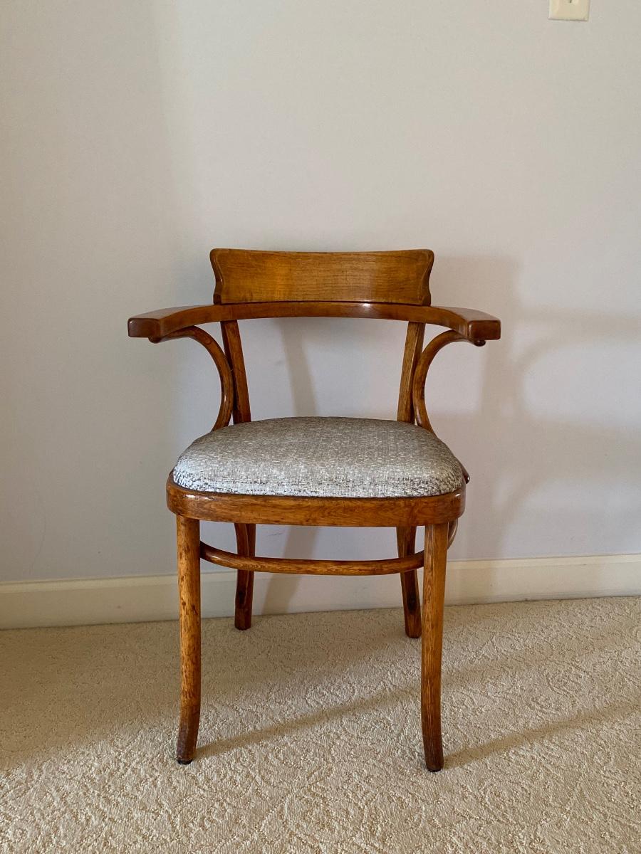 Small wooden chairs with gray padded seat. Please see all pictures as they are the best representation of the items. The pictures show condition, measurements if taken, and what is included in the lot. Due to the large amount that we photograph and the time frame, we are not always able to take measurements. All items unless noted, are pre-owned and have been used. If you purchased furniture, you must bring help. We do not allow one person to carry large furniture out on their own. Bring help, tools and a truck for the safety of our client’s homes, and your personal safety. Any damages that result to the property including walls, and floors due to moving of the furniture will be charged to the buyer. Company policy. Thank you.