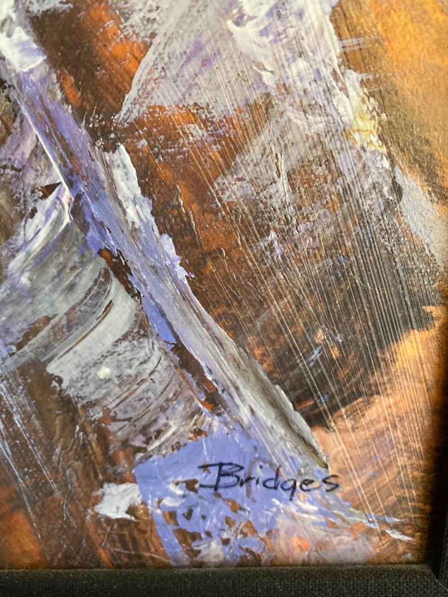 44”x44” Large square framed painting. Signed by “Bridges”. Gorgeous! Pictures do not do this beautiful piece justice. Please see all pictures as they are the best representation of the items. The pictures show condition, measurements if taken, and what is included in the lot. Due to the large amount that we photograph and the time frame, we are not always able to take measurements. All items unless noted, are pre-owned and have been used. If you purchased furniture, you must bring help. We do not allow one person to carry large furniture out on their own. Bring help, tools and a truck for the safety of our client’s homes, and your personal safety. Any damages that result to the property including walls, and floors due to moving of the furniture will be charged to the buyer. Company policy. Thank you.