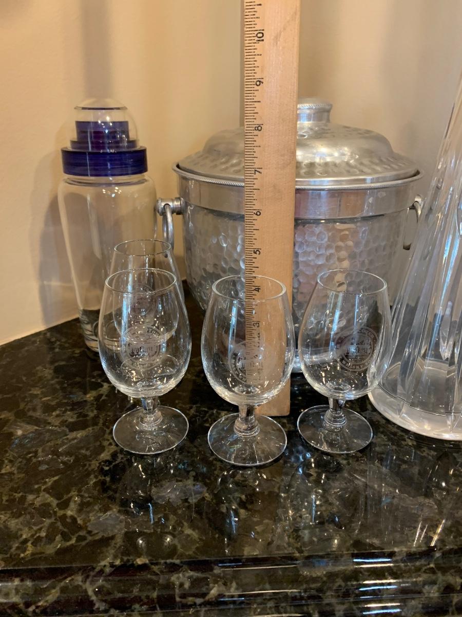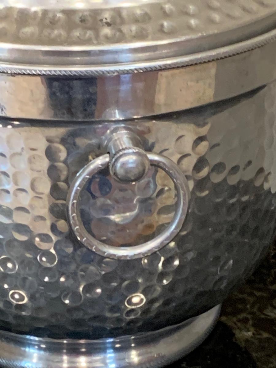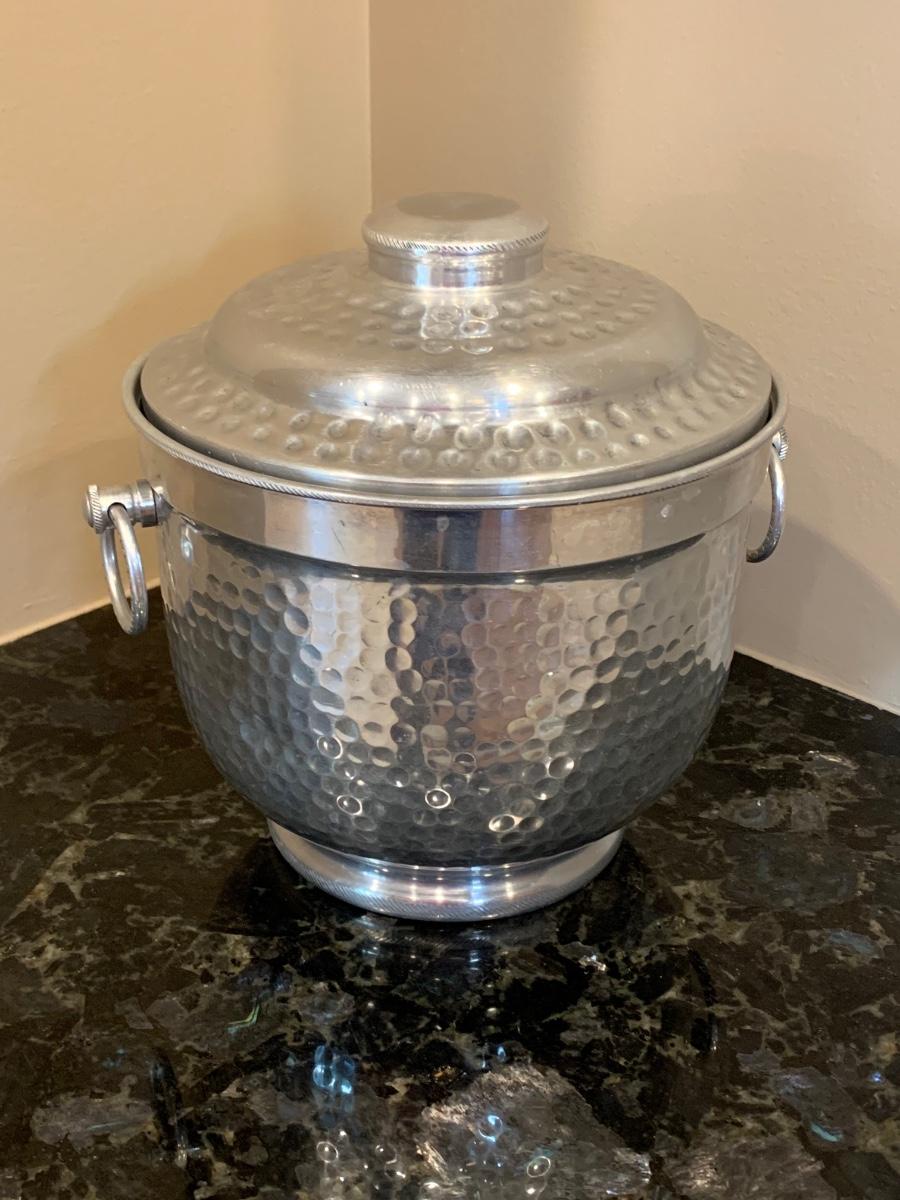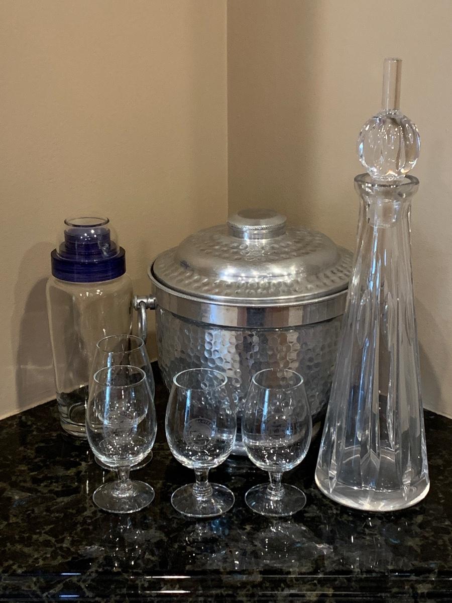 LOT 34R  Vintage Hammered Aluminum Ice Bucket, Crystal Decanter Glass Mixer & More