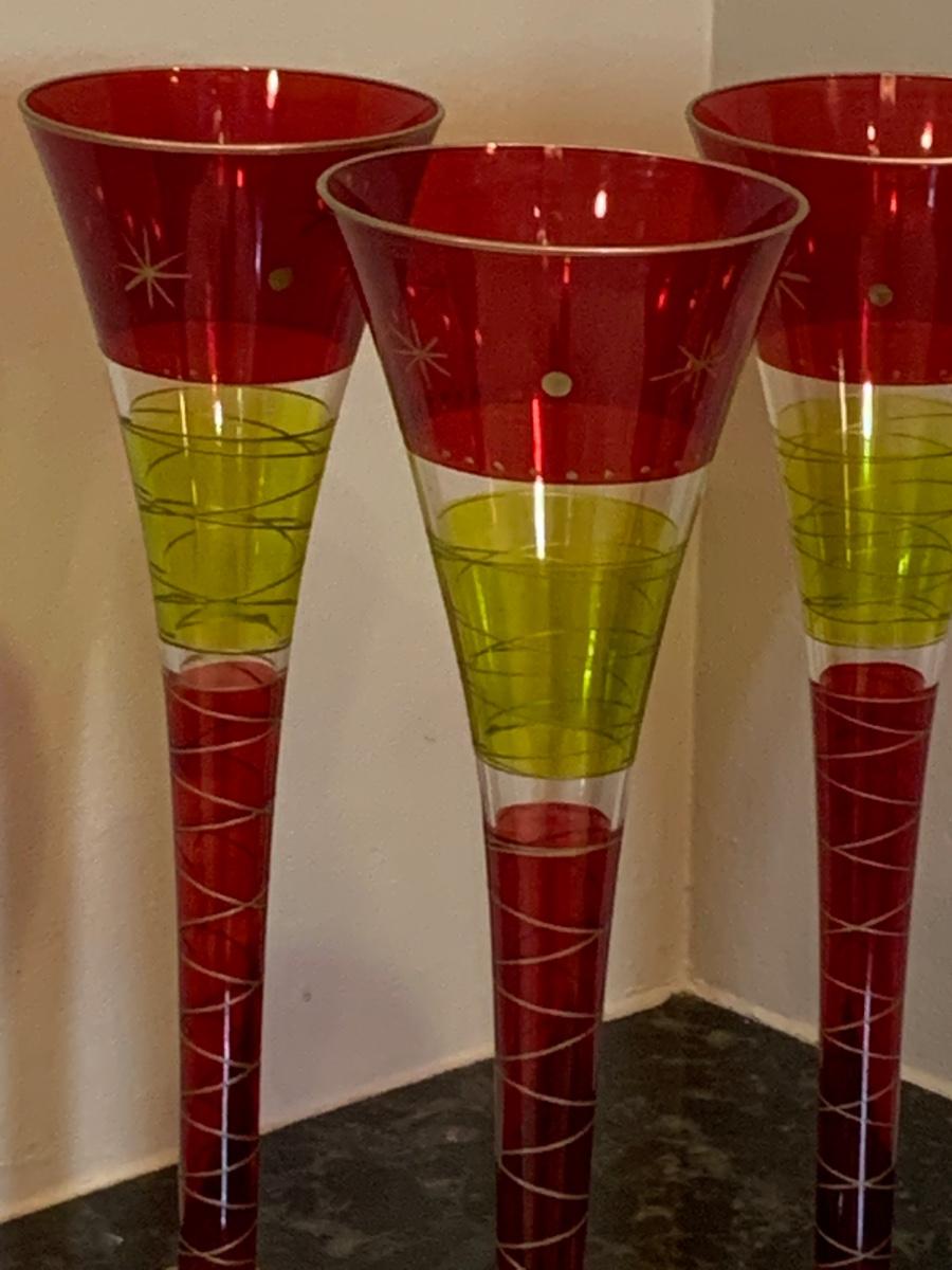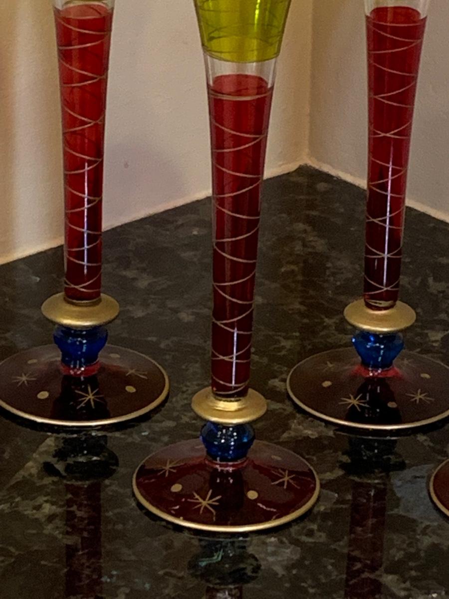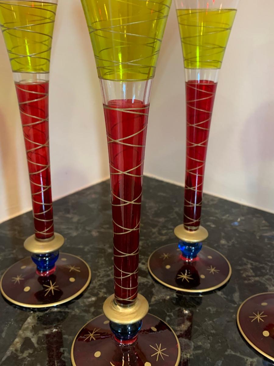 LOT 35R: Pier One Festive Multi Color Bohemian Hand Painted Champagne Trumpet Flutes