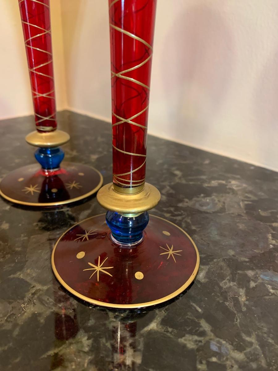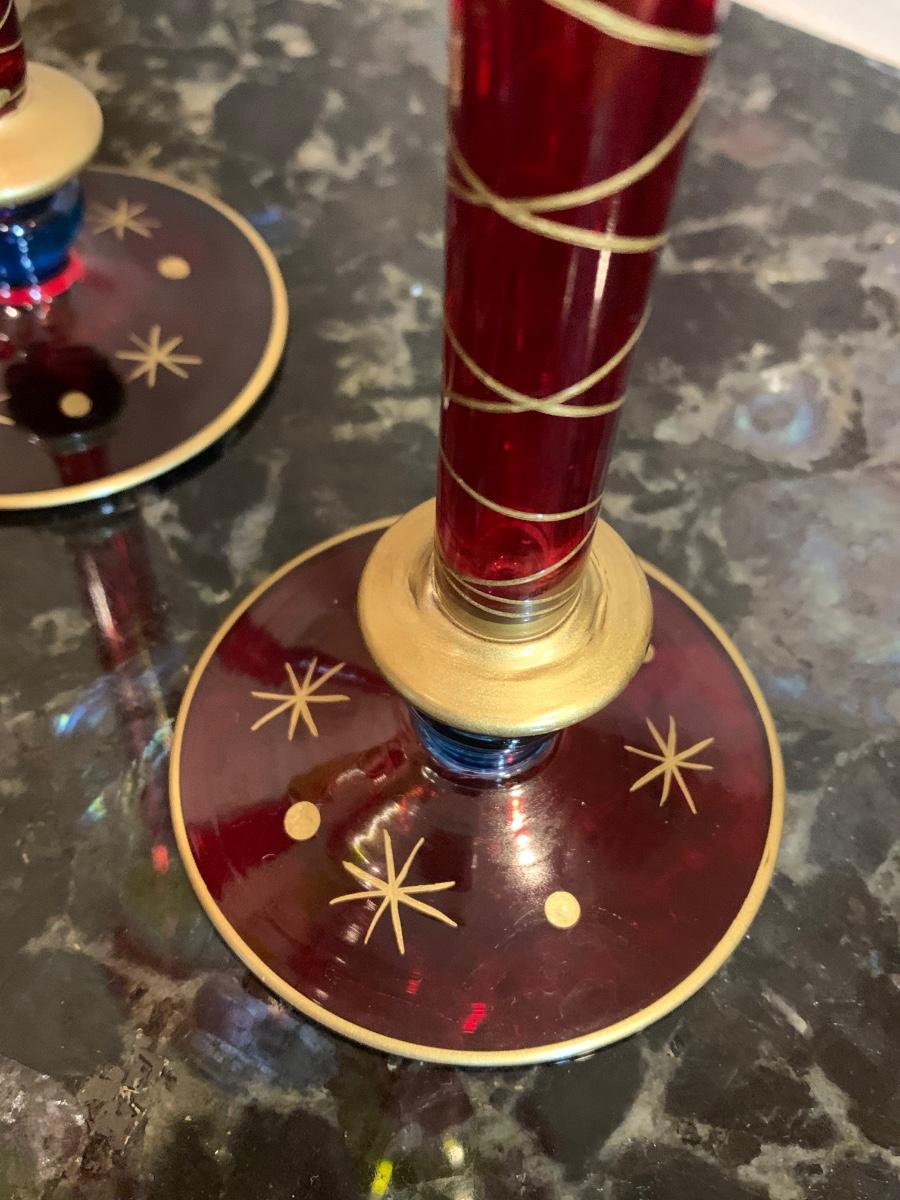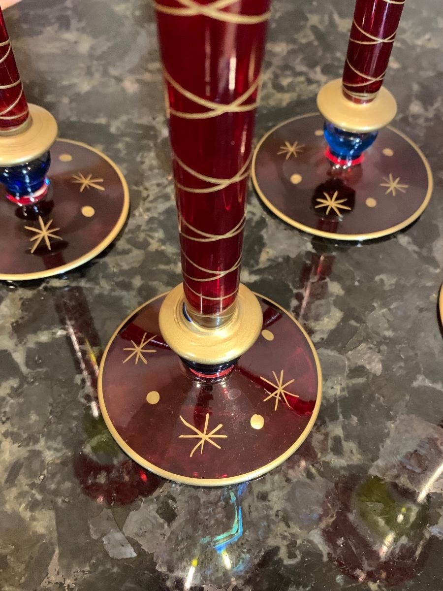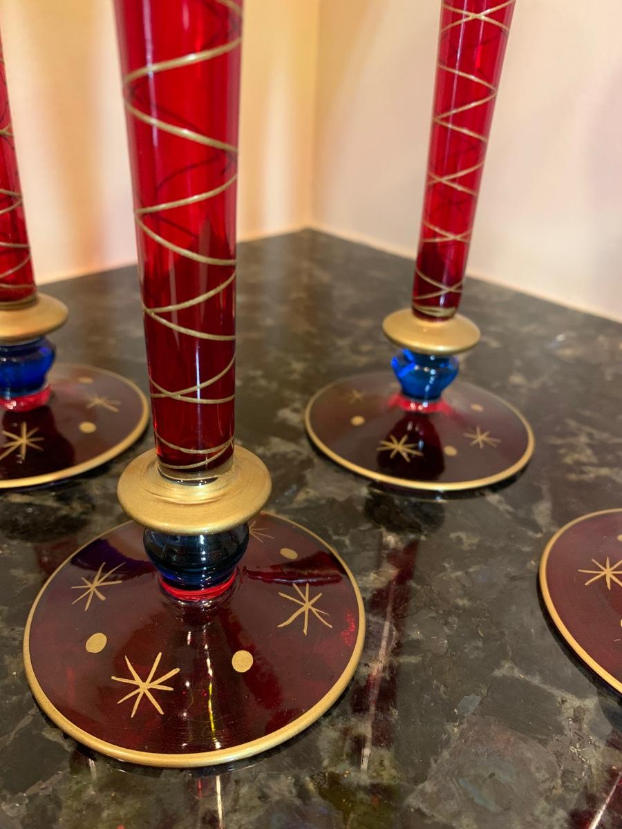 LOT 35R: Pier One Festive Multi Color Bohemian Hand Painted Champagne Trumpet Flutes