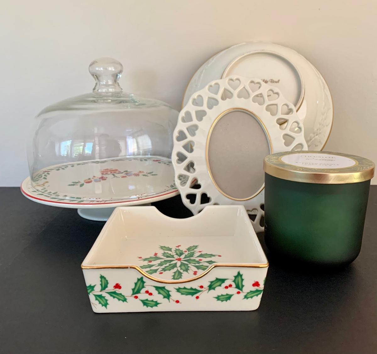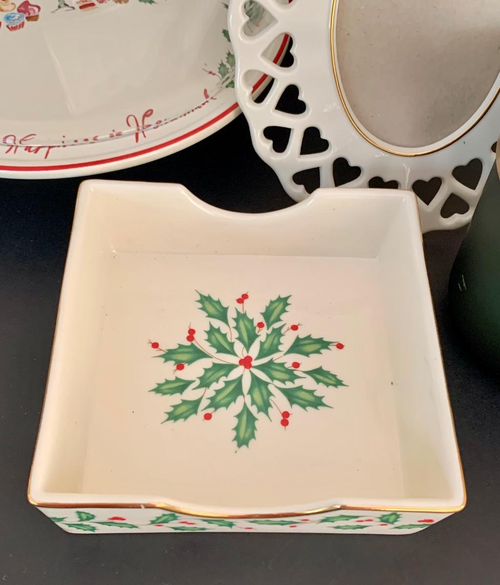 LOT 46R: Lenox Collection Holiday Napkin Holder, Cover Cake/Sweets Plate, Fruits of Life Bowl & More