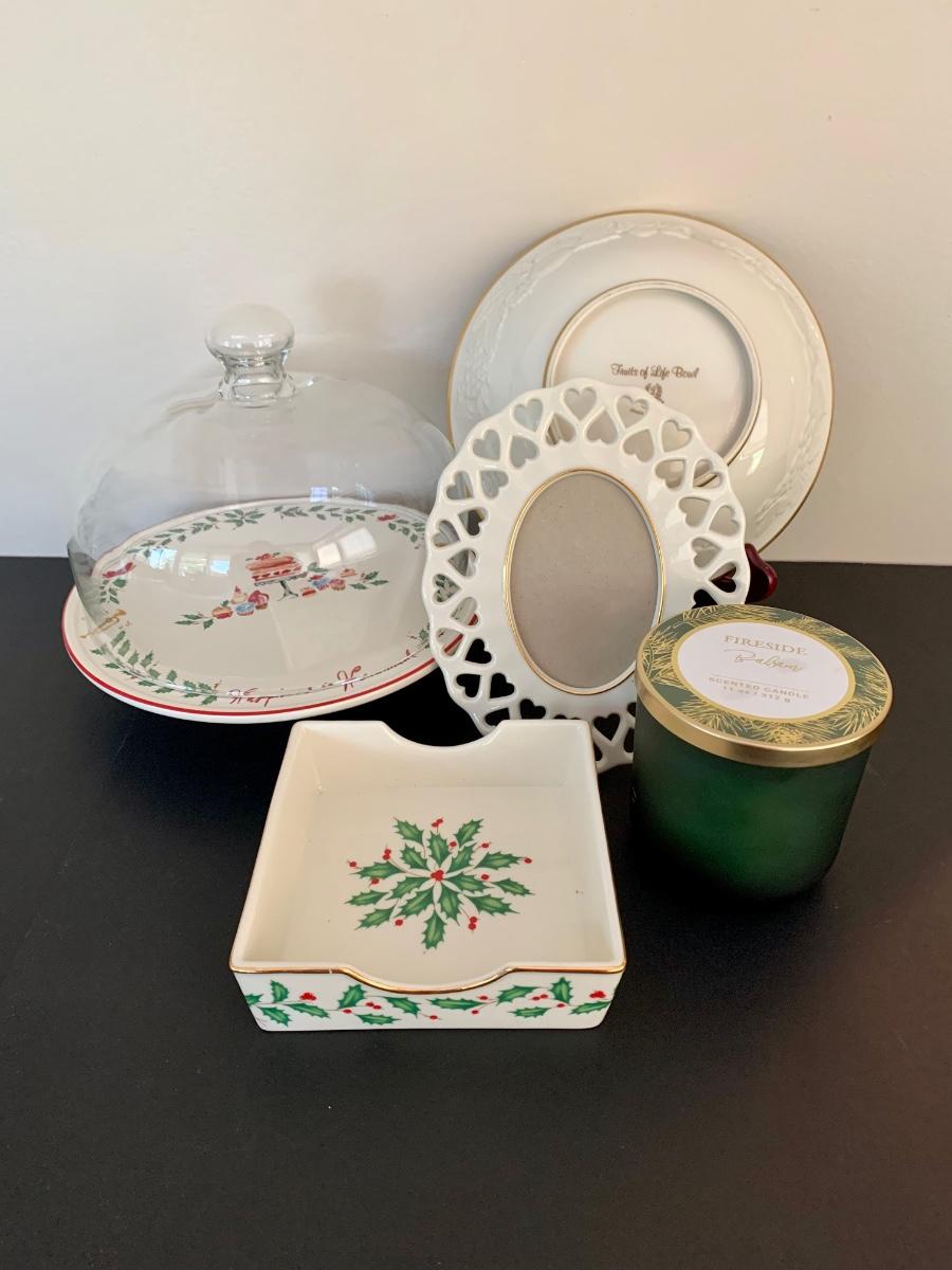 LOT 46R:  Lenox Collection Holiday Napkin Holder, Cover Cake/Sweets Plate, Fruits of Life Bowl & More
