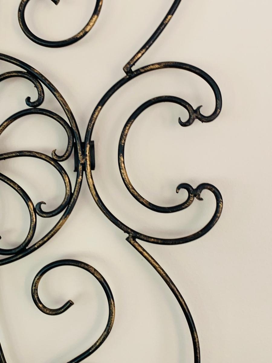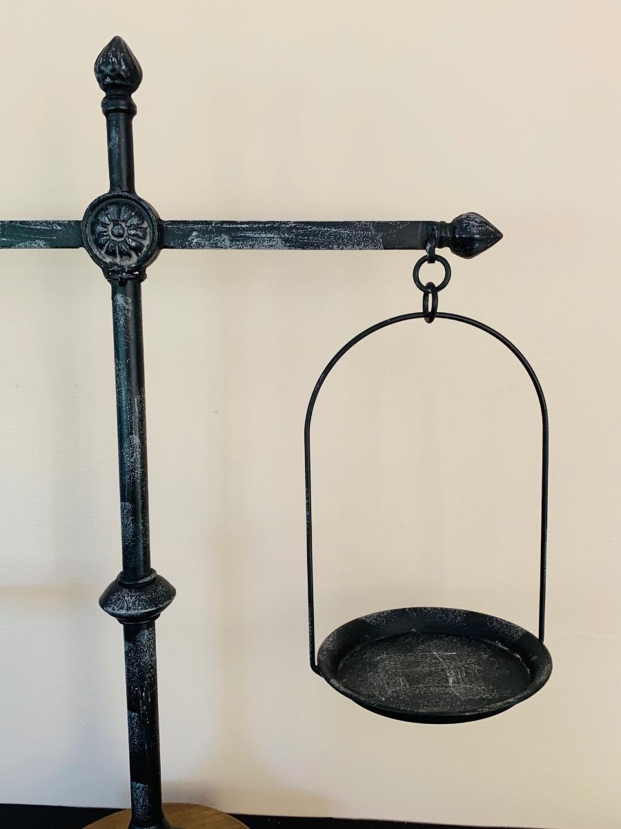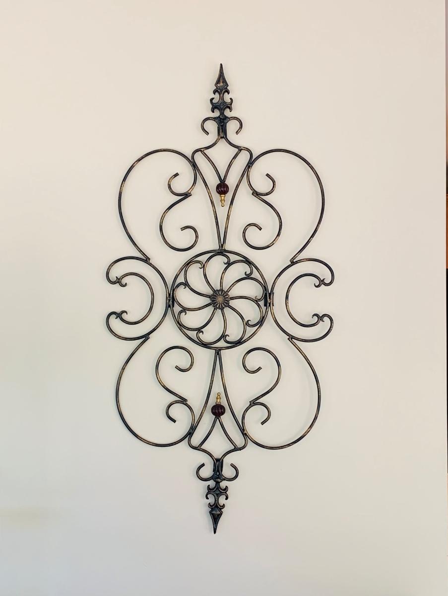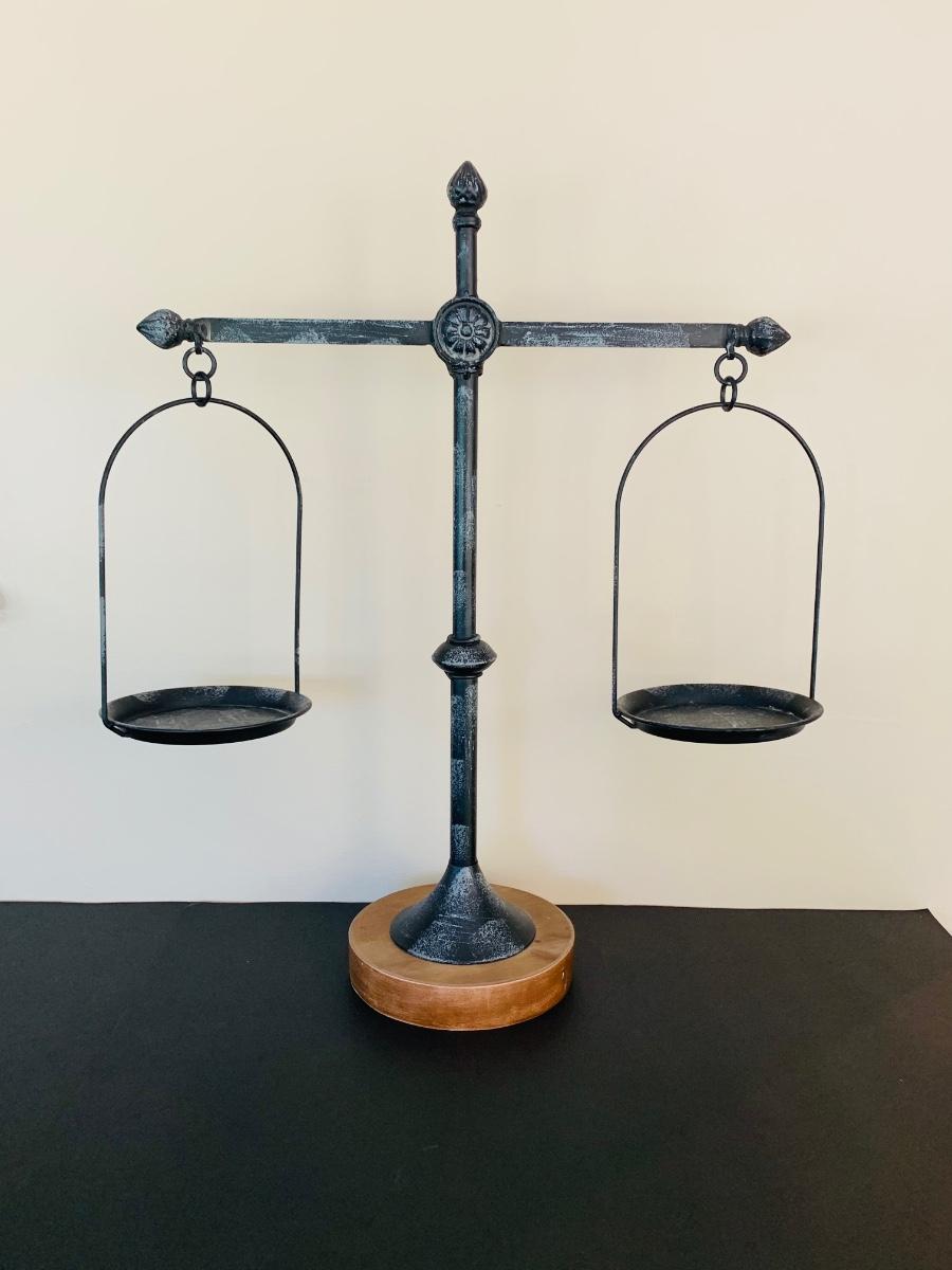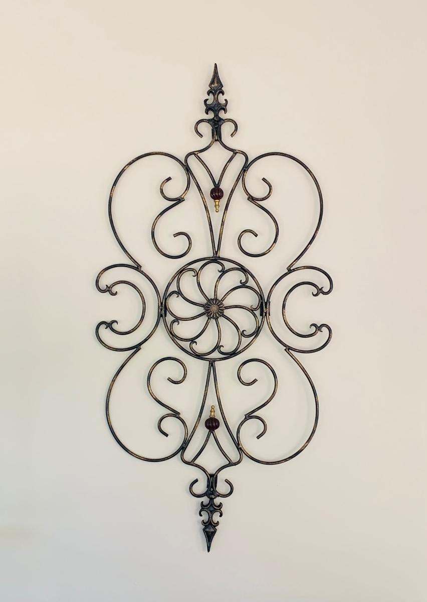 LOT 48R: Scroll Metal Wall Decor & Large Metal Justice Scale Decor