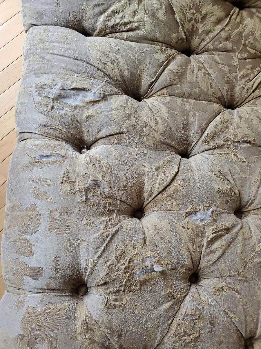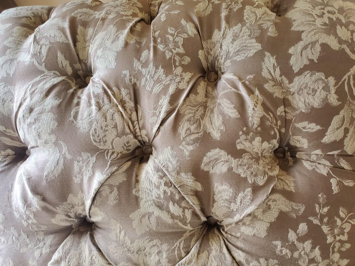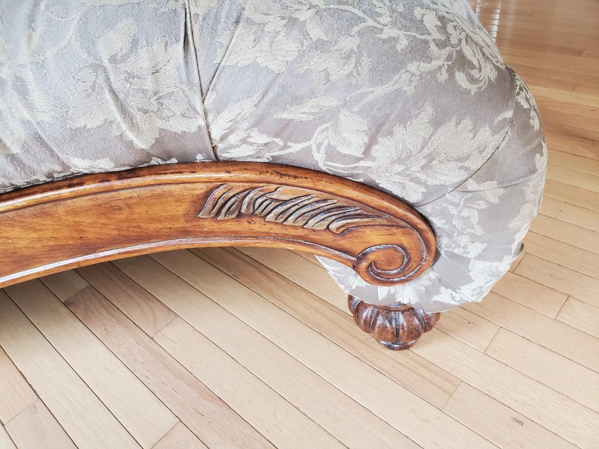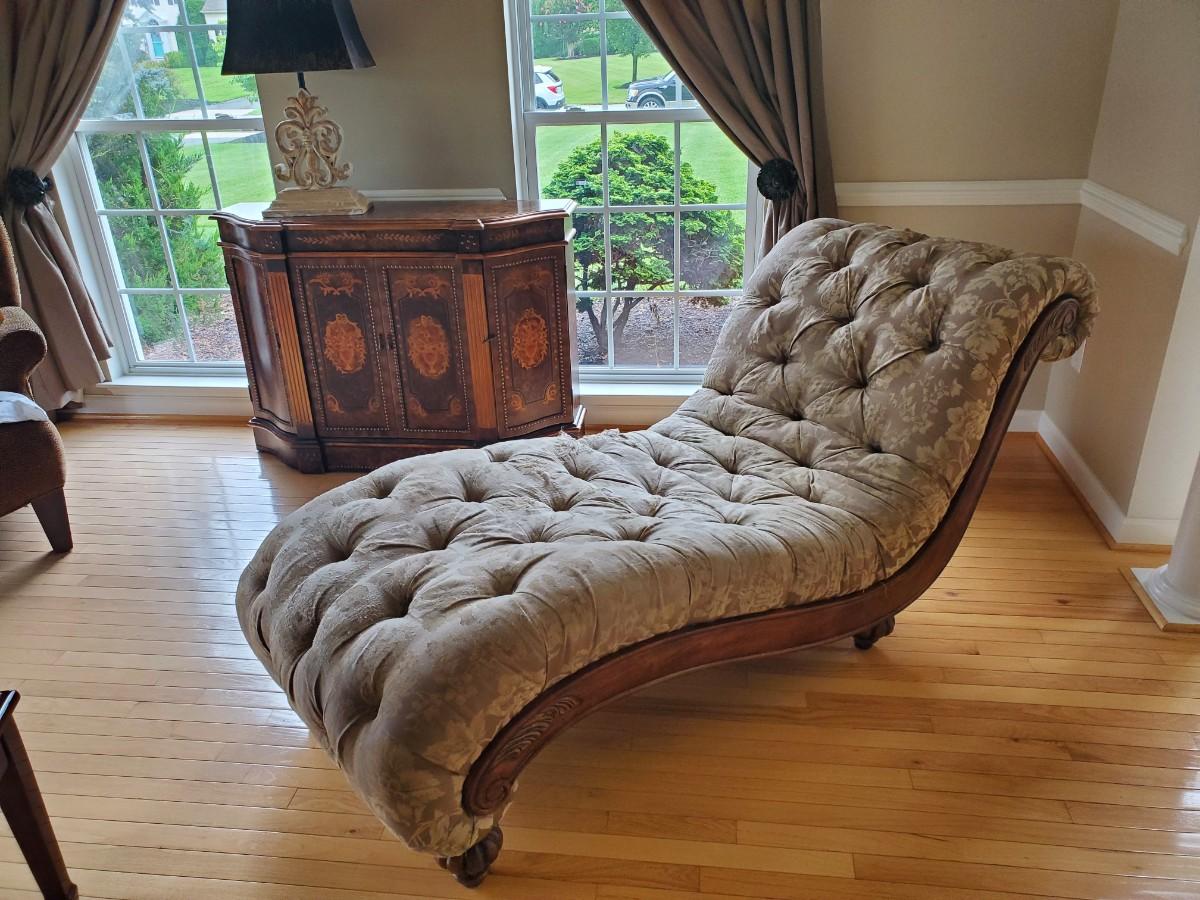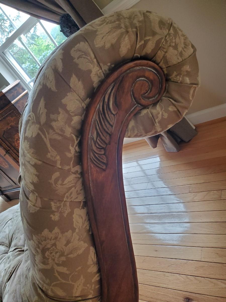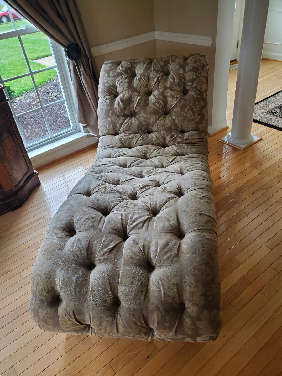 LOT 51G: Chaise Lounge w/Wood Accents and Button Tufting, Needs Reupholstering