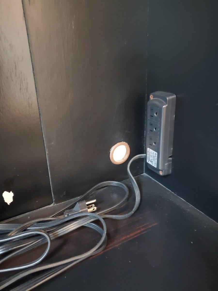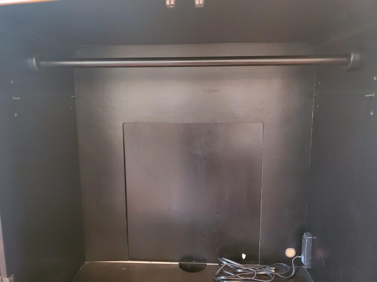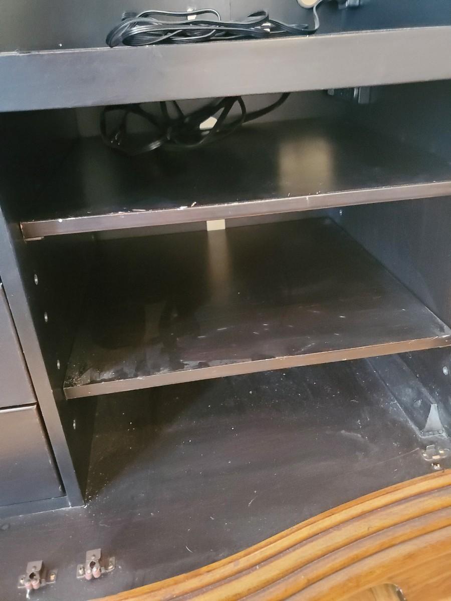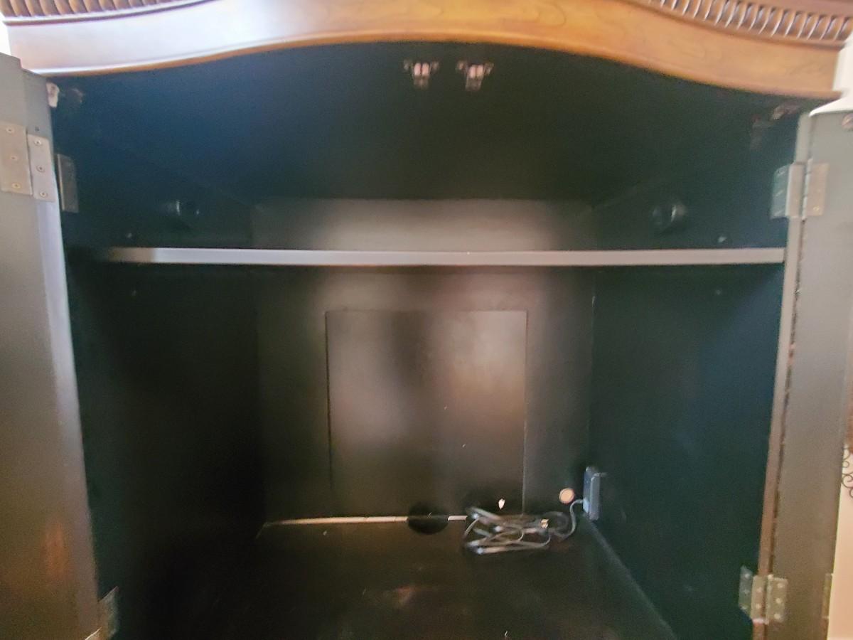 It was used as a stereo storage space so it is complete with surge protectors but can be easily rearranged as to Wardrobe Armoire with the Hanging Rod included.
