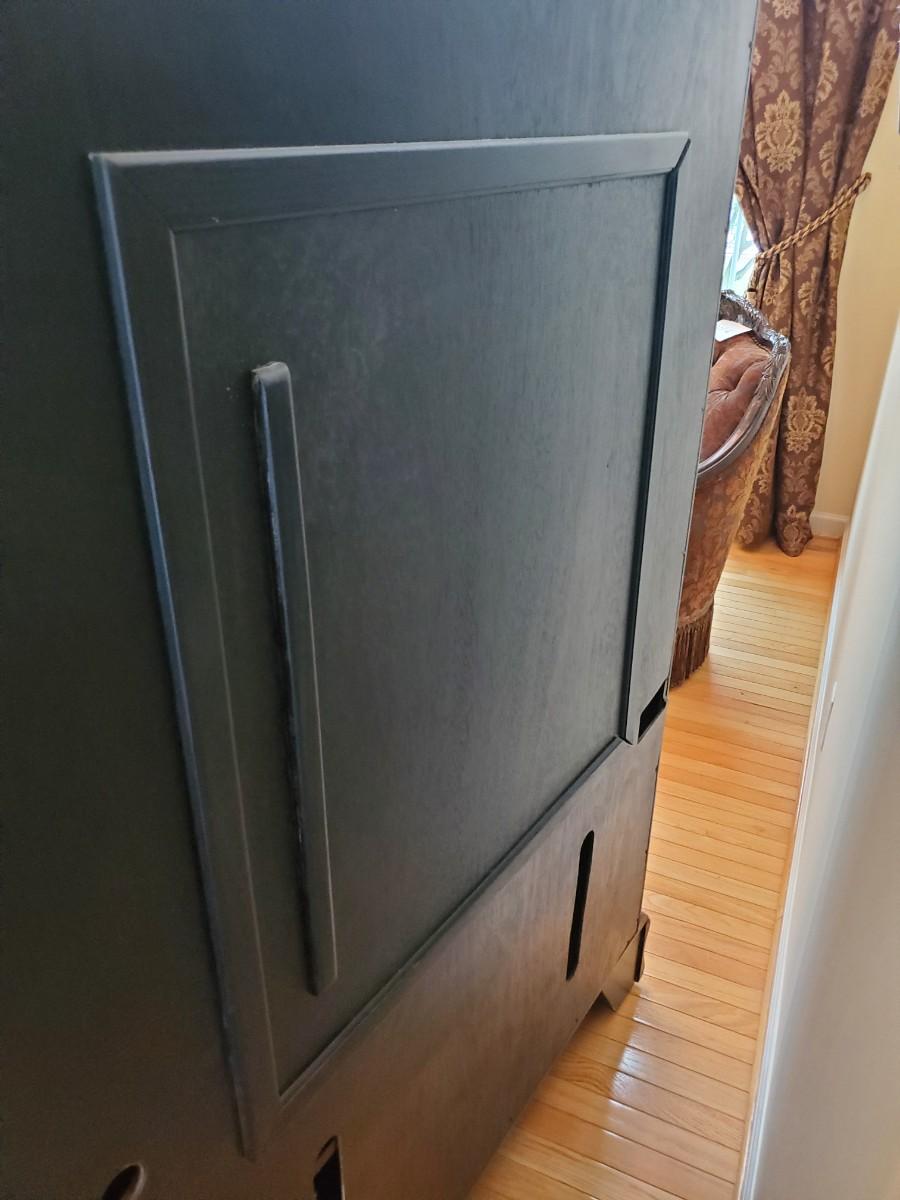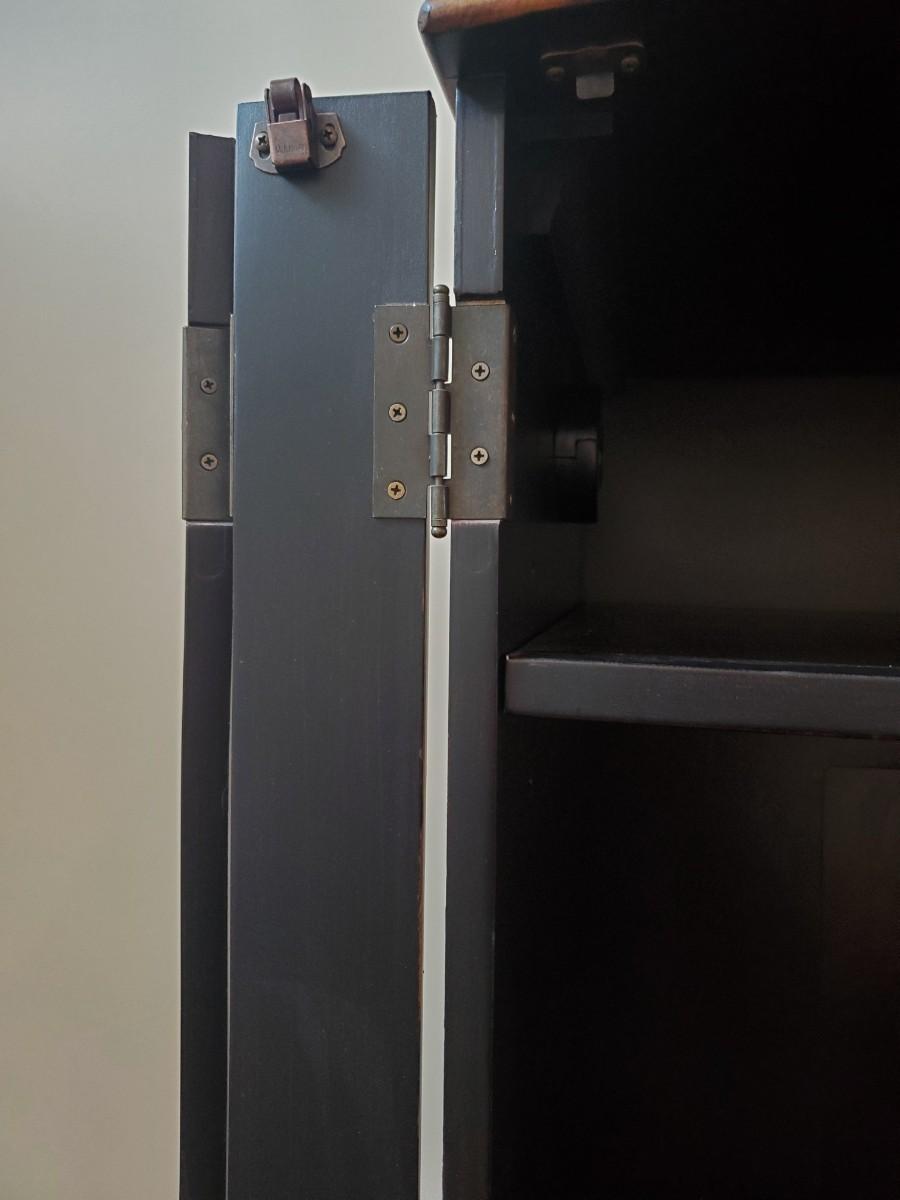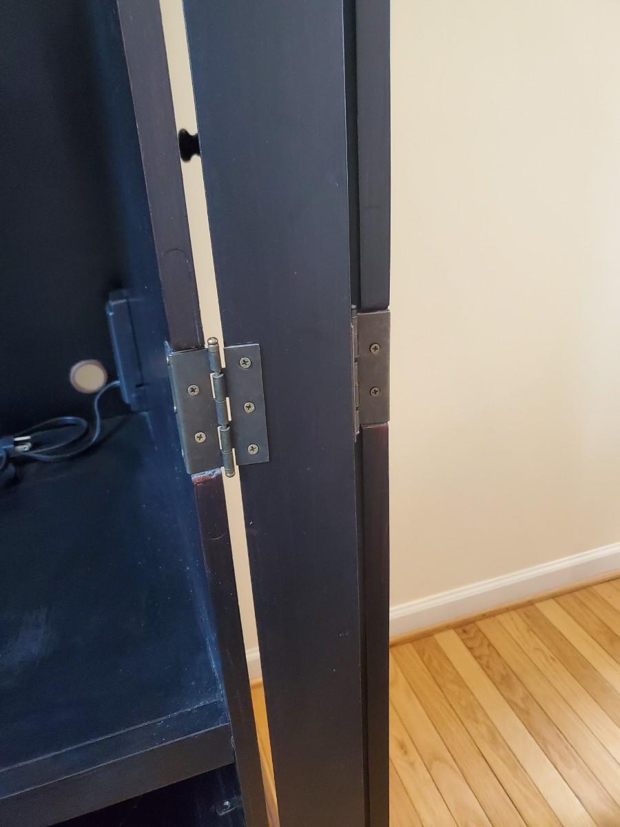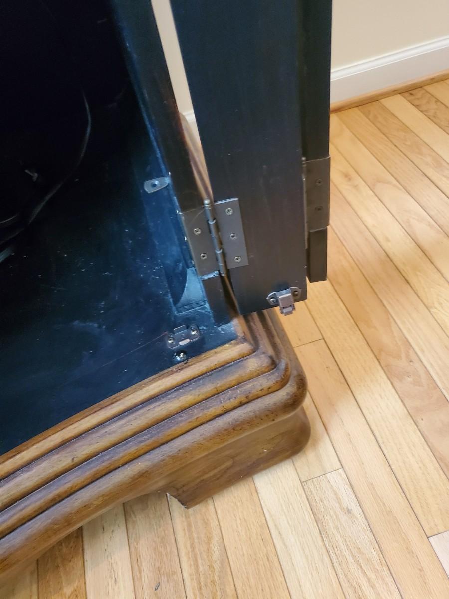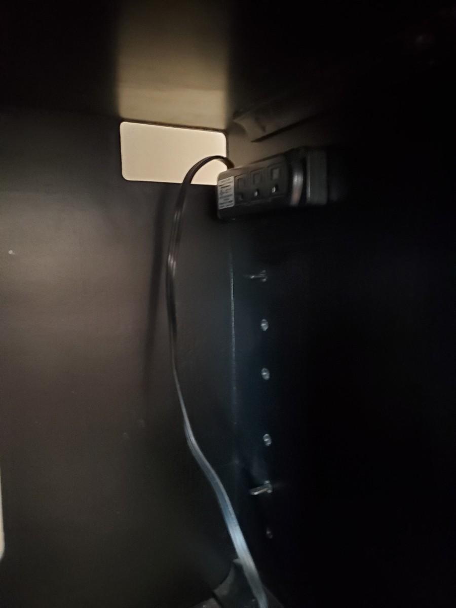 It was used as a stereo storage space so it is complete with surge protectors but can be easily rearranged as to Wardrobe Armoire with the Hanging Rod included.